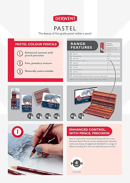 Included Components : DERWENT Pastel Pencils Tin (Set of 12)
