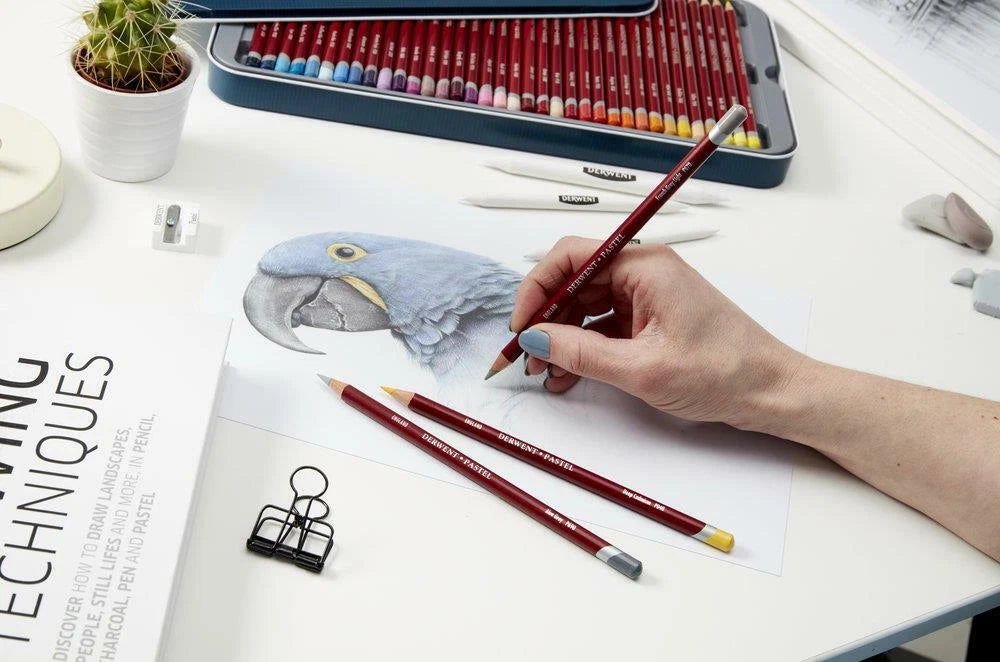 Derwent Pastel Pencils have a unique fine chalk texture which creates a beautiful laydown of soft colour. Ideal for creating detailed drawings, sketches, portraitures and life studies. Pastel Pencils are highly pigmented and naturally water-soluble medium. Available in 72 highly colours.