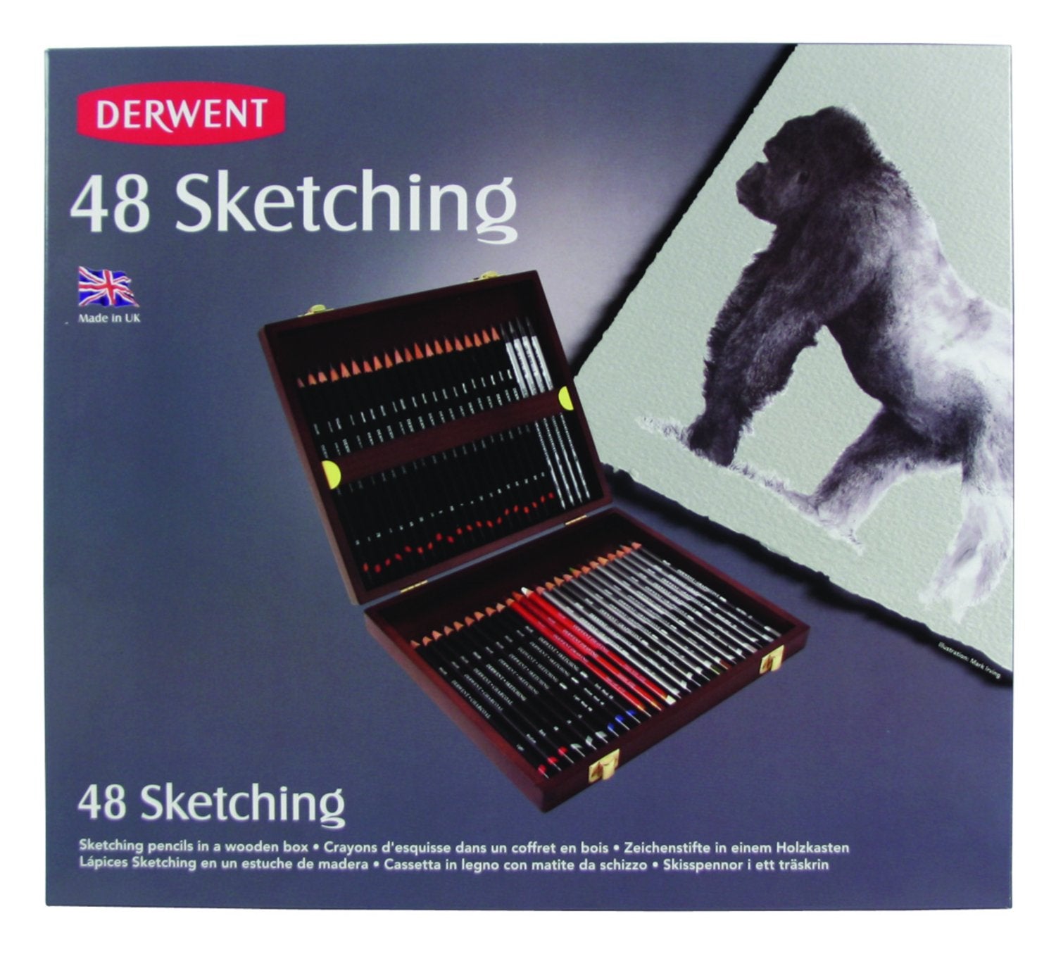 Included Components: DERWENT Sketching Collection Pencils Wooden Gift Box Set (Pack of 48)
