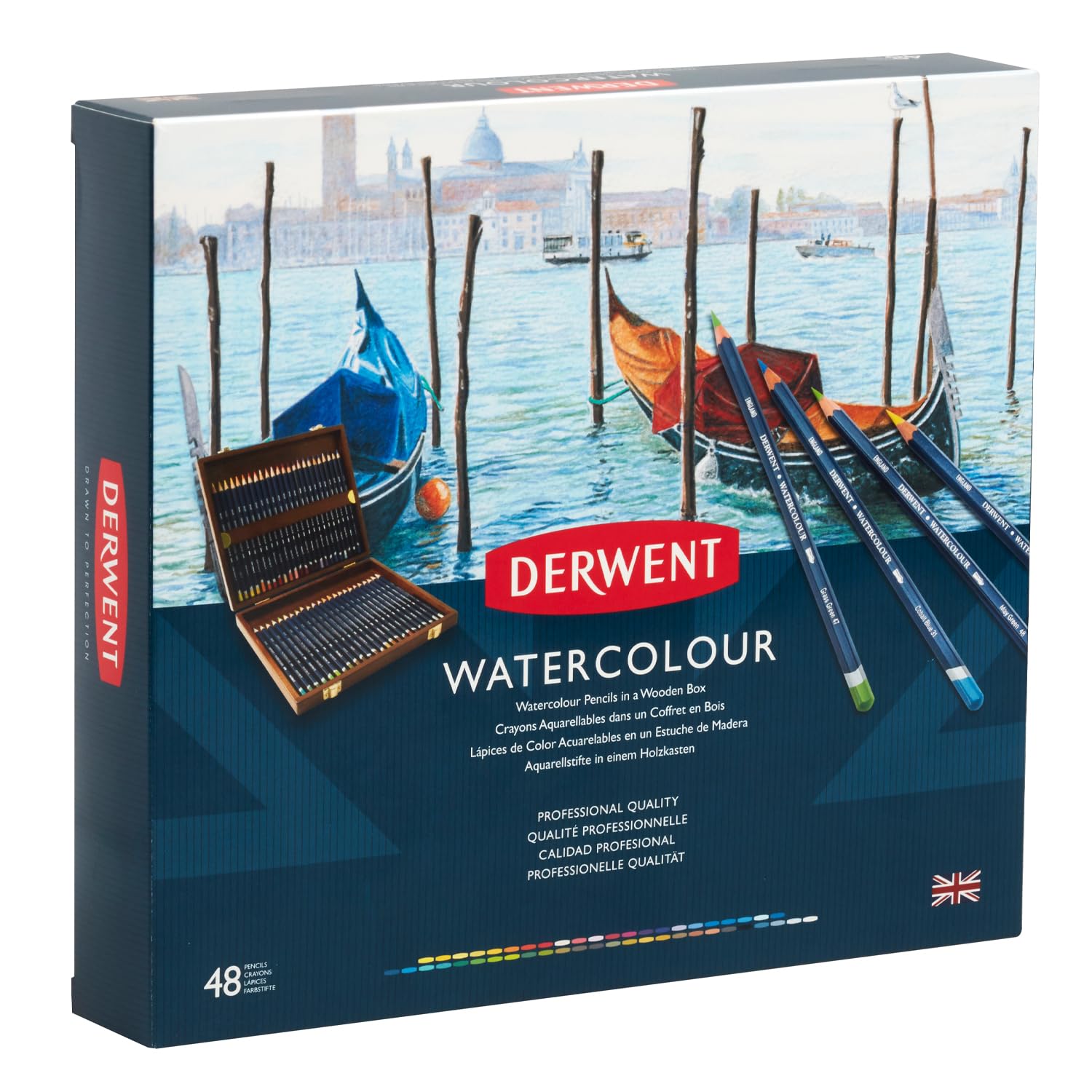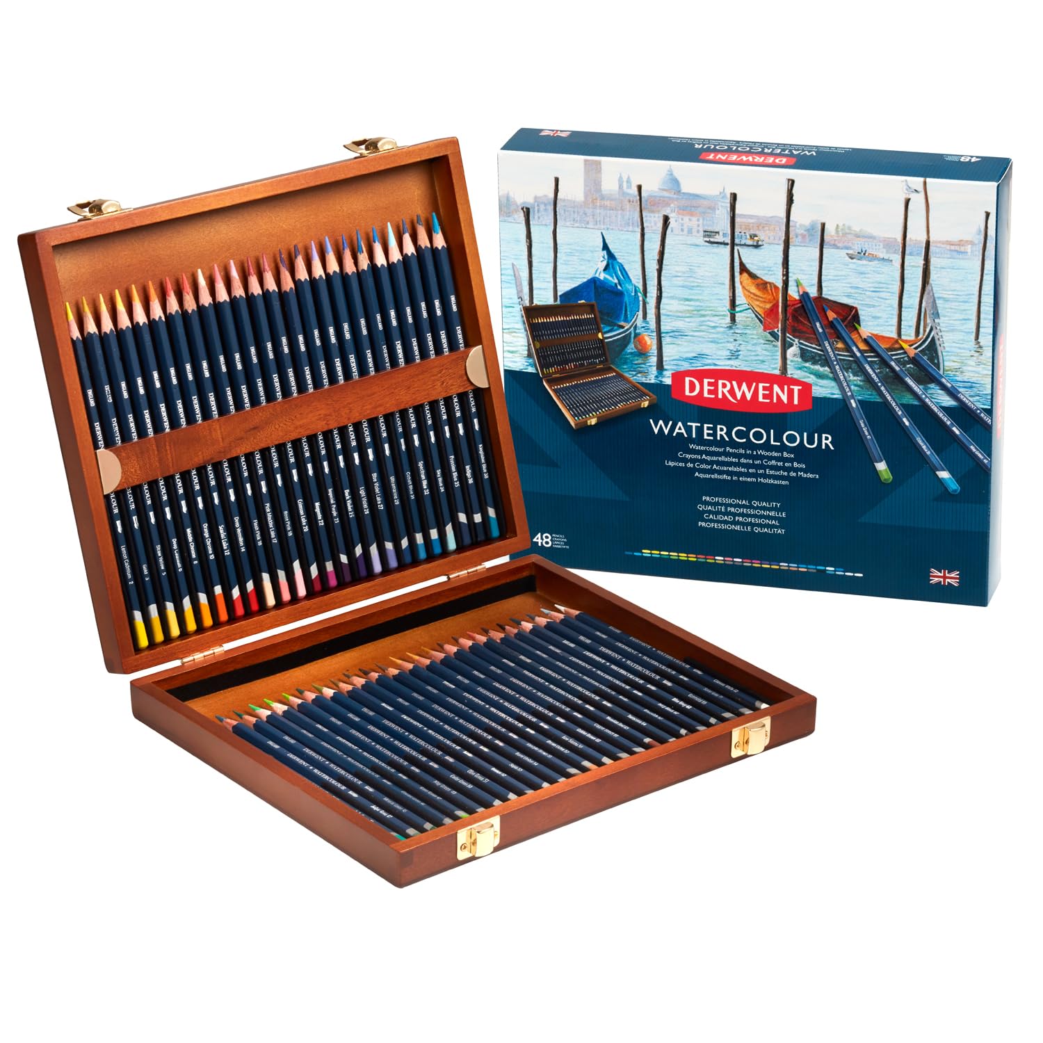 Included Components : DERWENT Watercolour Colouring Pencils Wooden Gift Box Set (Pack of 48)