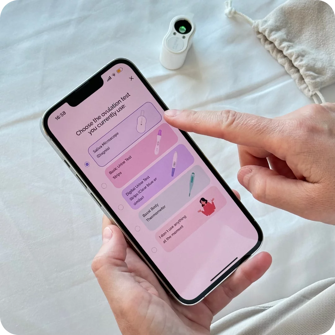 The smart, non-invasive ovulation test recognises your estrogen patterns and gives you a quick and lab-accurate fertility window insights in the comfort of your own home. Tailored for women on any life stage - from family planning to menopause.