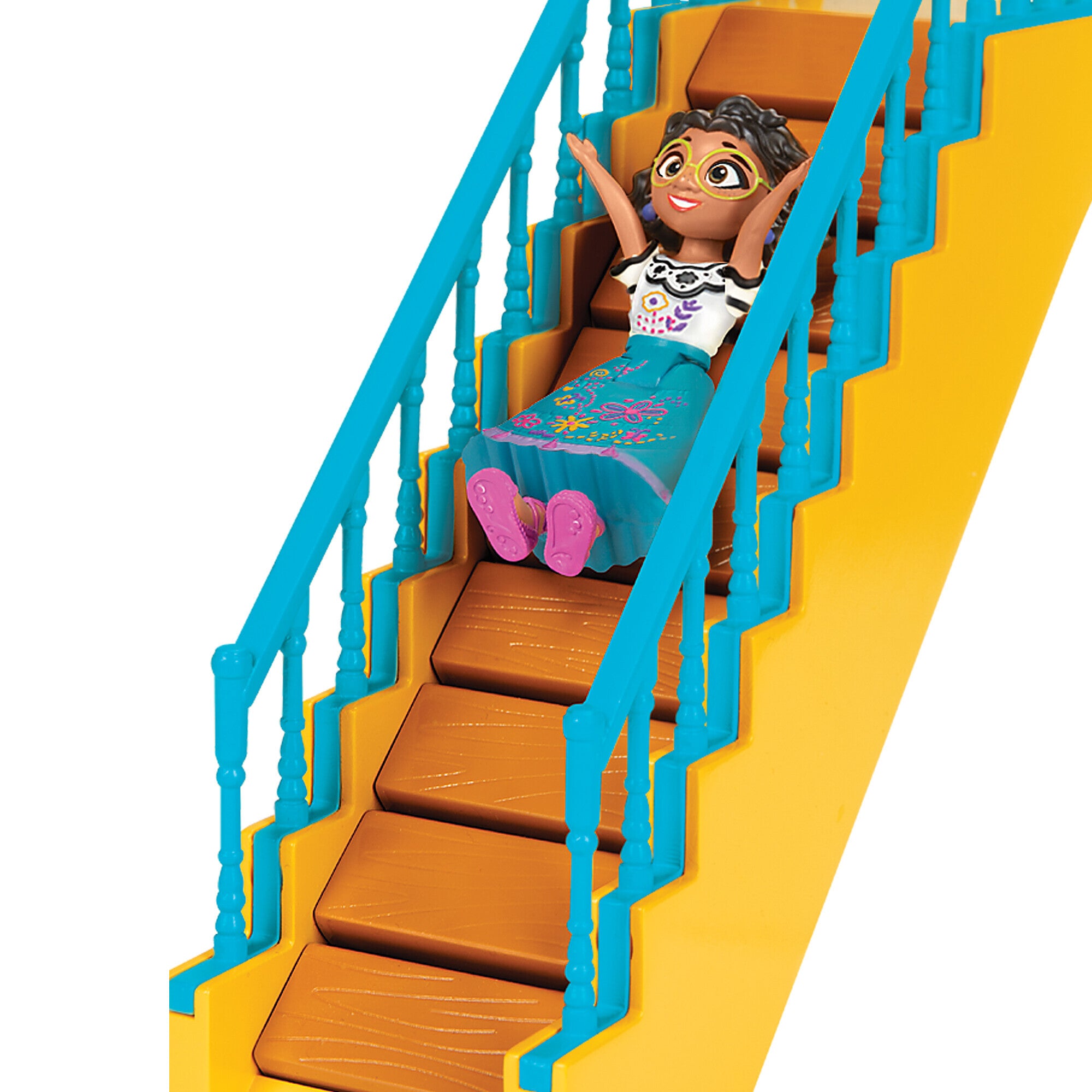 Playset is over 15 inches tall, with 3 floors, 7 rooms, and includes a Mirabel Doll, and 15 house accessories!,Includes Step and Surprise feature unique to Jakk s Pacific small doll line; Only the Mirabel small doll, with her unique footprint, can activate a music and light show throughout the house! ,Raise and lower Aunt Pepa s weather-changing elevator for lights and sounds! Staircase turns into a slide for Mirabel just like in the film!,Mirabel s room plays music and features a light display.