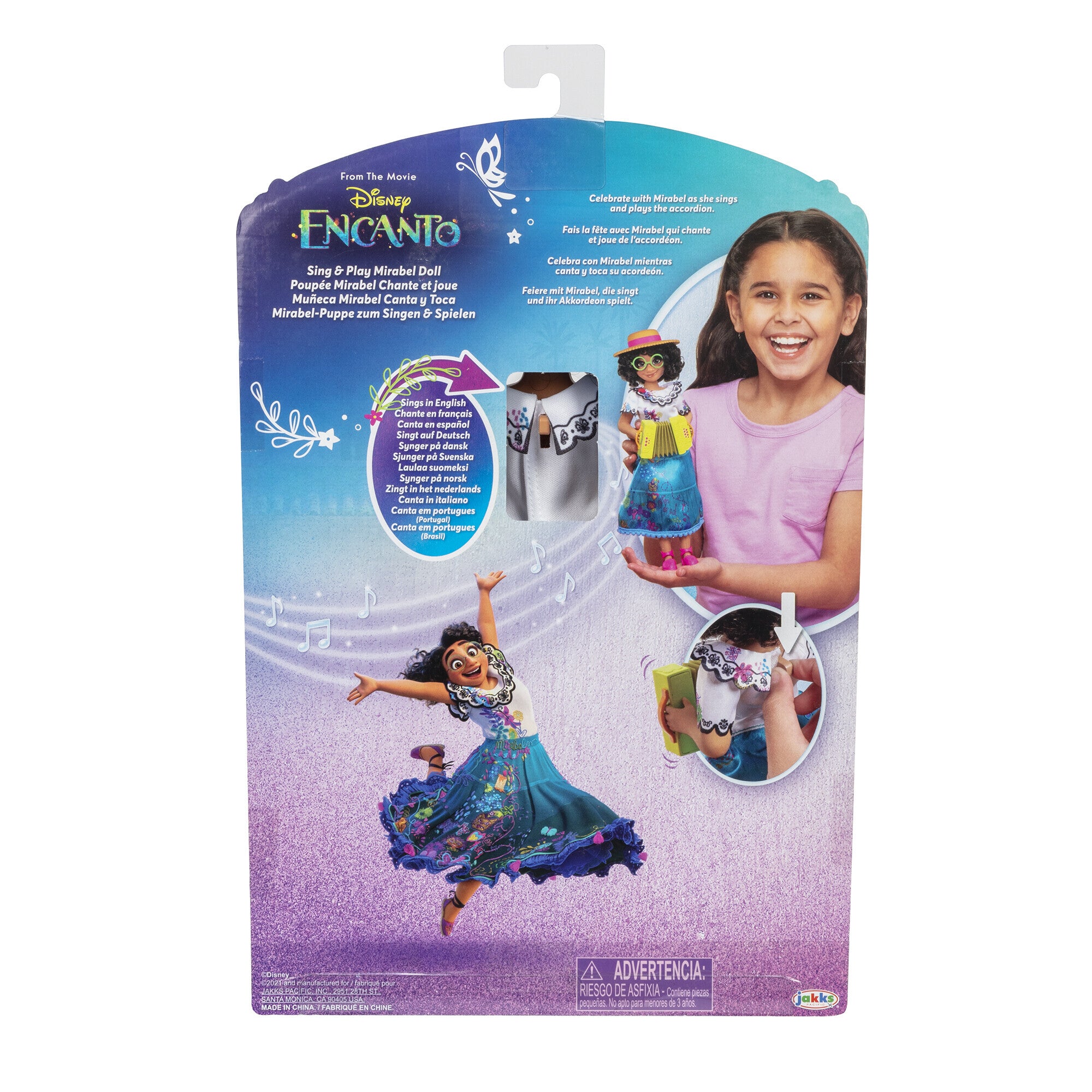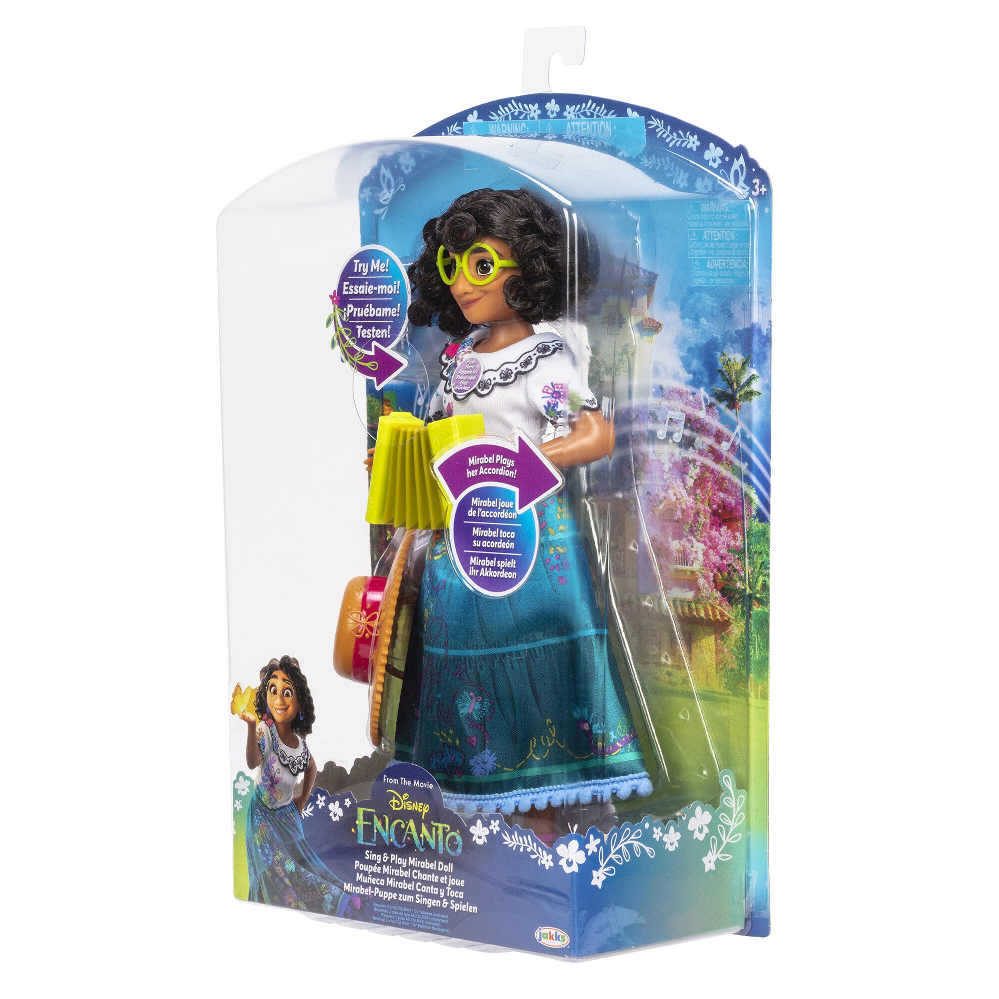 Inspired by Disney Charm. Celebrate with Mirabel as she sings and plays the accordion,Press the lever on the back of the wrist to help Mirabel play her accordion,Mirabel doll comes dressed in her signature dress, glasses, shoes, earrings, and hat,Includes music inspired by Disneys Encanto