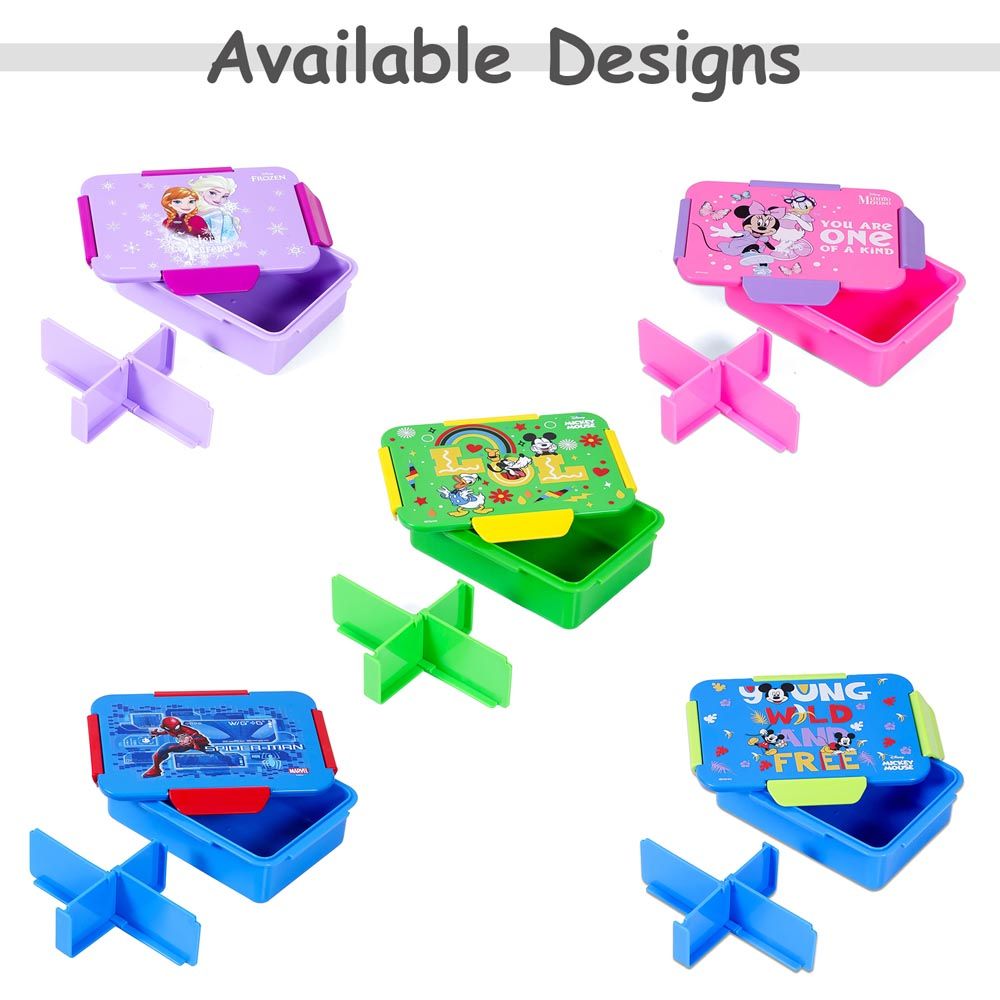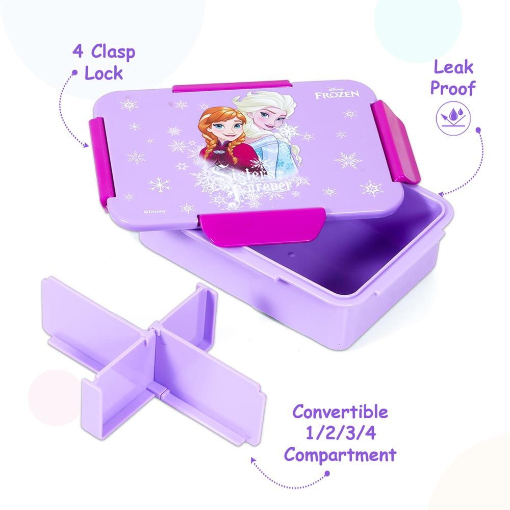 Bring your love of Disney's Frozen Princess with you everywhere with you with exclusive, gorgeous Frozen Princess design with Eazy Kids, We make Meal time fun! Brighten up your kids day with a sumptuous meal in Disney Meal Box . Disney 1 / 2 / 3/ 4 Compartment Convertible Bento Lunch Box is made with BPA and Phthalates Free material non-toxic, food grade & eco-friendly. The Capacity of Bento Lunch Box is 850ml for a Balanced Nutritious Meals, comes with 4 Clasp lock & Top Layer is lined with silicon is completely leakproof. , , The Meal Box is Freezer safe(-18 degree C), Dishwasher safe(Without Lid at Top Rack) and Microwave Safe(Without Lid, 100 degree C). Disney Meal Box is lightweight to carry to school. Comes great color with great Prints. Team them up with Disney Matching Water Bottle and have a great Back to School!