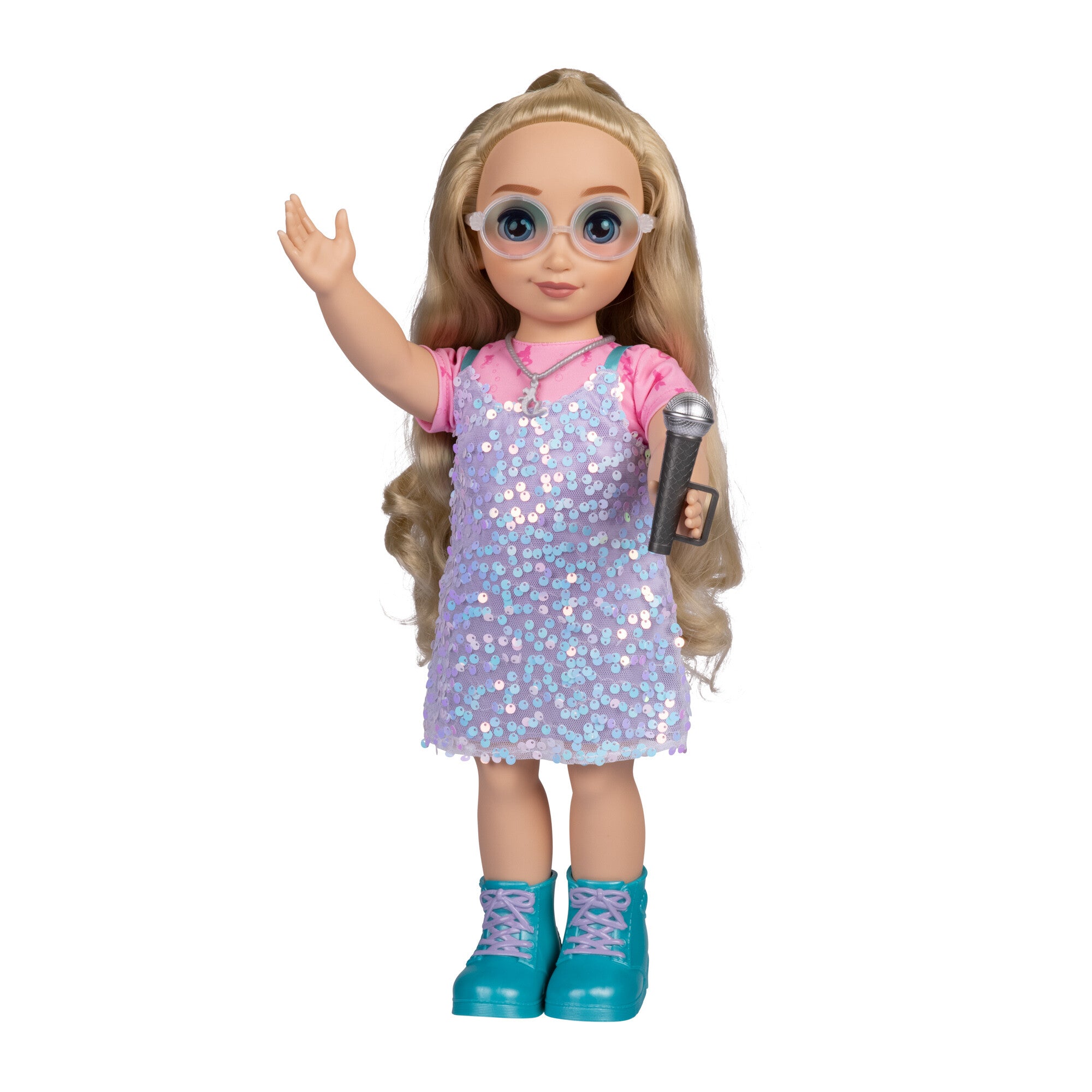 Show off the Ariel in you with this 18-inch doll from Disney ily 4EVER! Her fashion is inspired by her favorite Disney character, Ariel, and she loves being star of the show. She has beautiful blonde hair with crystal blue eyes. Her Ariel-inspired outfit includes a shimmery sequin dress, T-shirt and boots . A pair of sunglasses, necklace and microphone to complete her look. She is ready to be the spotlight of the night.