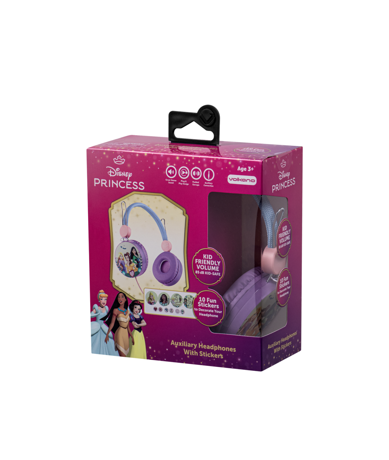 Make your little one's music time magical with the Disney Princess AUX Headphone! These enchanting headphones are designed for both comfort and fun featuring soft padded earcups that provide a cozy fit for extended listening. With an easy plug & play design your child can connect to any device with an AUX port in no time. The headphones deliver great stereo sound bringing their favorite Disney tunes to life. Plus with 10 delightful Disney Princess stickers your child can personalize and decorate their headphones turning every listening session into a royal adventure.