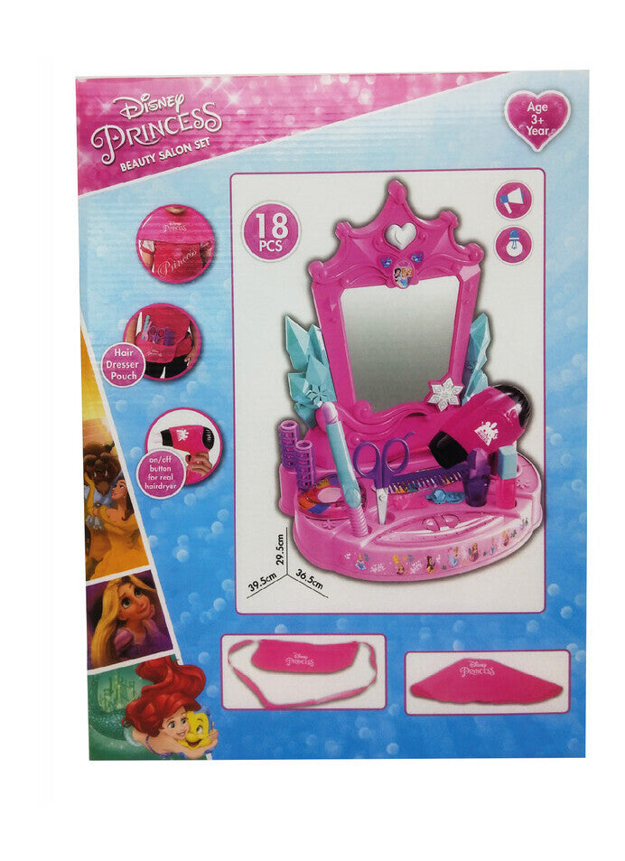 Girls Hair Salon Kits, the fun begins the minute your child get this hair salon toys! ,Disney Princess Beauty Salon Set includes kids barber set toys, Realistic Hair Dryer, Stylist Apron, Curling Iron, Round Hair Brush, Comb, Scissor, Perfume, Hair Spray, Mirror, Shawl and Toolbag.,Realistic Blow Dryer, This pretend girls hair kit simulates a real scene. Your kids can easily hold this Hair Stylist Toy.,My First Styling Kit, Children like to imitate adults dressing up. This adorable educational toys is suitable for your girl to invite friends to play the game together. Fashion beauty salon play set for little girls by playing these toys, exercise ch