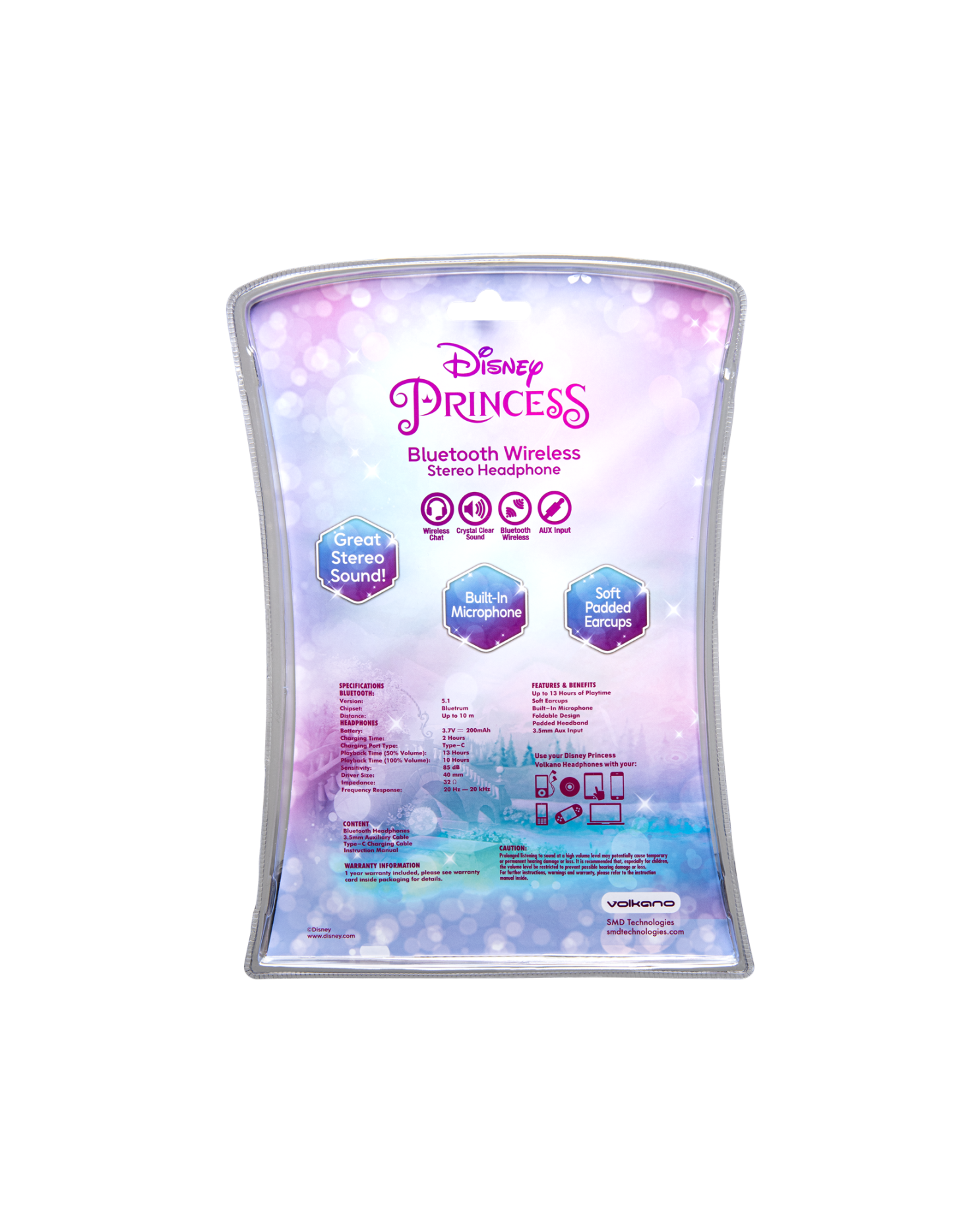 Crown your little one with the ultimate listening accessory the Disney Princess Padded Bluetooth Headphones! These headphones feature a charming princess-themed design that will make every listening session feel like a royal experience. With Bluetooth connectivity, your child can enjoy up to 15 hours of wireless playtime, making it perfect for music, movies, and games. The foldable design allows for easy storage, while the padded headband and soft earcups ensure maximum comfort. These headphones also include a built-in microphone and aux input for flexible listening options, and the USB Type-C charging port provides quick recharges to keep the fun going.
