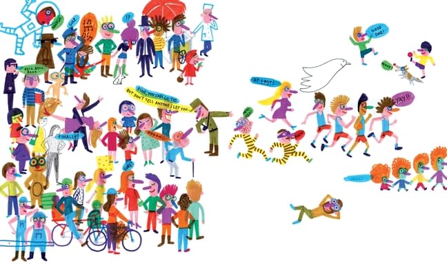 The guard always follows the general's orders without question. This time, the order is that everyone must KEEP OUT. The right-hand page of this book must be kept blank for the general. As the crowd builds up on the border, the guard is under pressure. If no one's allowed onto the next page, what will happen to the story? And then a ball bounces across the border... This slapstick postmodern tale is also a profound statement about dictatorship and peaceful revolution, from an award-winning author/illustrator team.