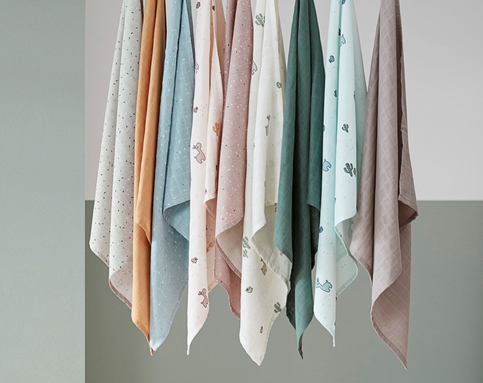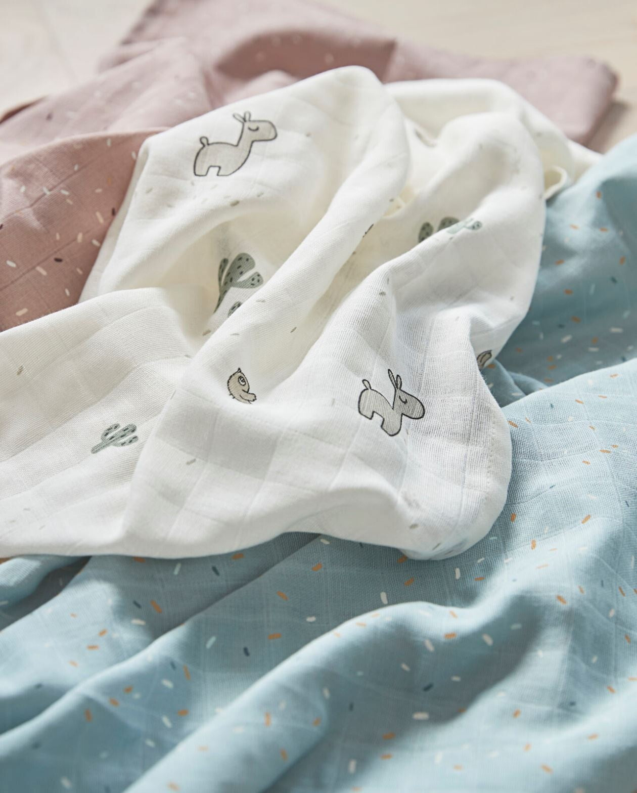 - The fun and practical 3-pack burp cloths in shades of blue and green consists of one in a solid green colour, one - blue decorated with Lalee the llama, Birdee and cactuses and one blue with festive Confetti print.