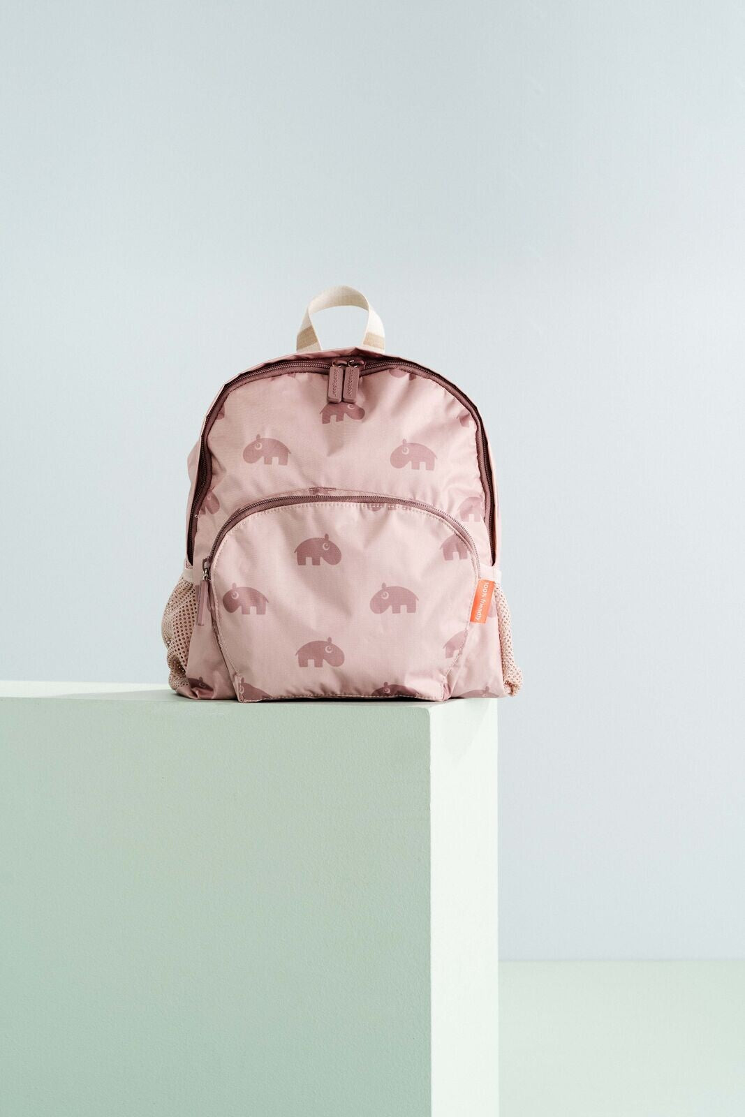 It has two side pockets with elastic band to fit a bottle and a front pocket. The children's backpack in powder is decorated with the loveable hippo Ozzo. It is made of 100% polyester which is durable and weatherproof. Inside there is a fun name tag where Ozzo invites your little explorer to come and dance with him.