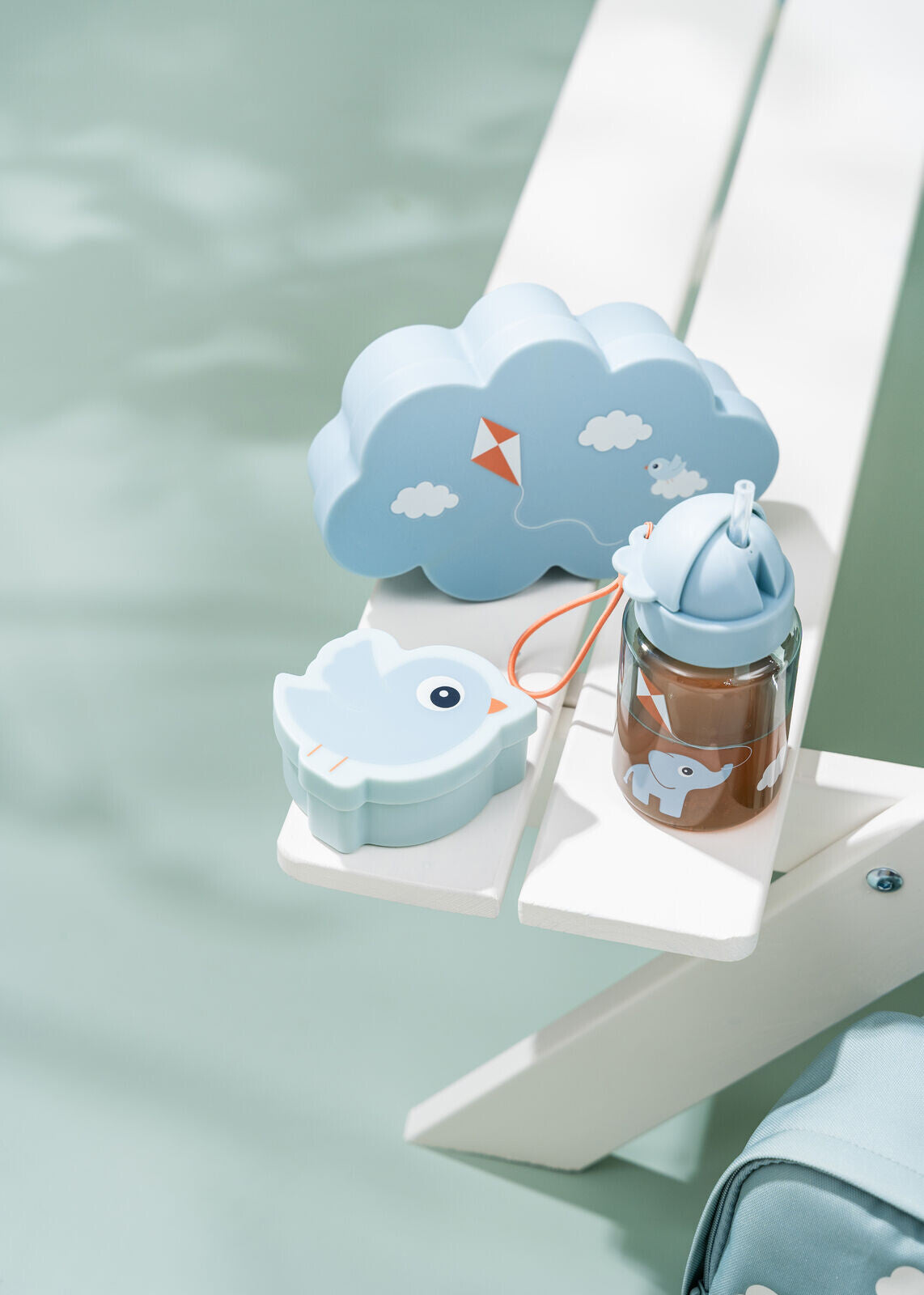 - Blue set including straw bottle, snack box, and lunch box