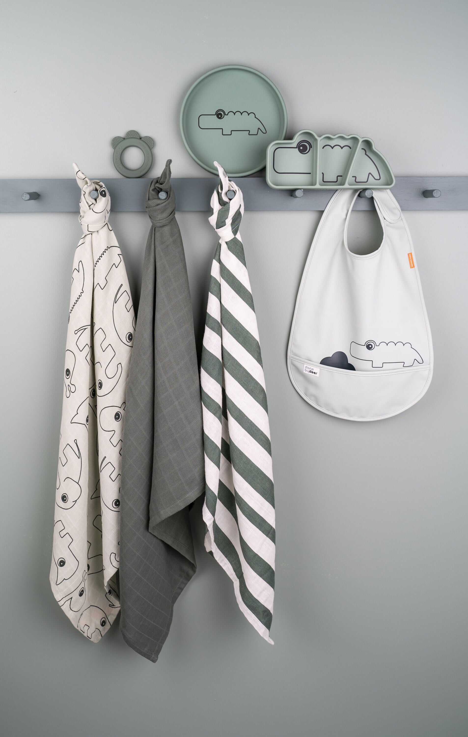 The crocodile stick & stay snack plate with three separate compartments will stay in place and help little eaters snack away. Croco is ready to make snack time fun!