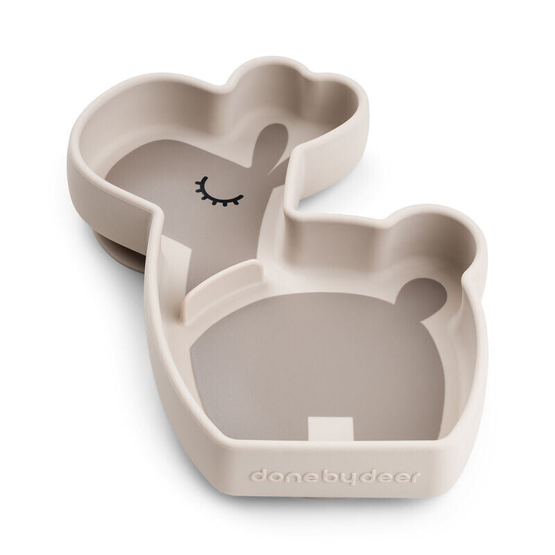 This Lalee Stick&Stay snack plate in a soft sand colour is made from 100% food-grade, BPA-free silicone, making it perfectly safe for your little one. The suction base prevents your kid from pushing, tipping, or throwing the plate. Two easy-release flaps are hidden under Lalee's tail and ear making it easy to lift the plate from the table.