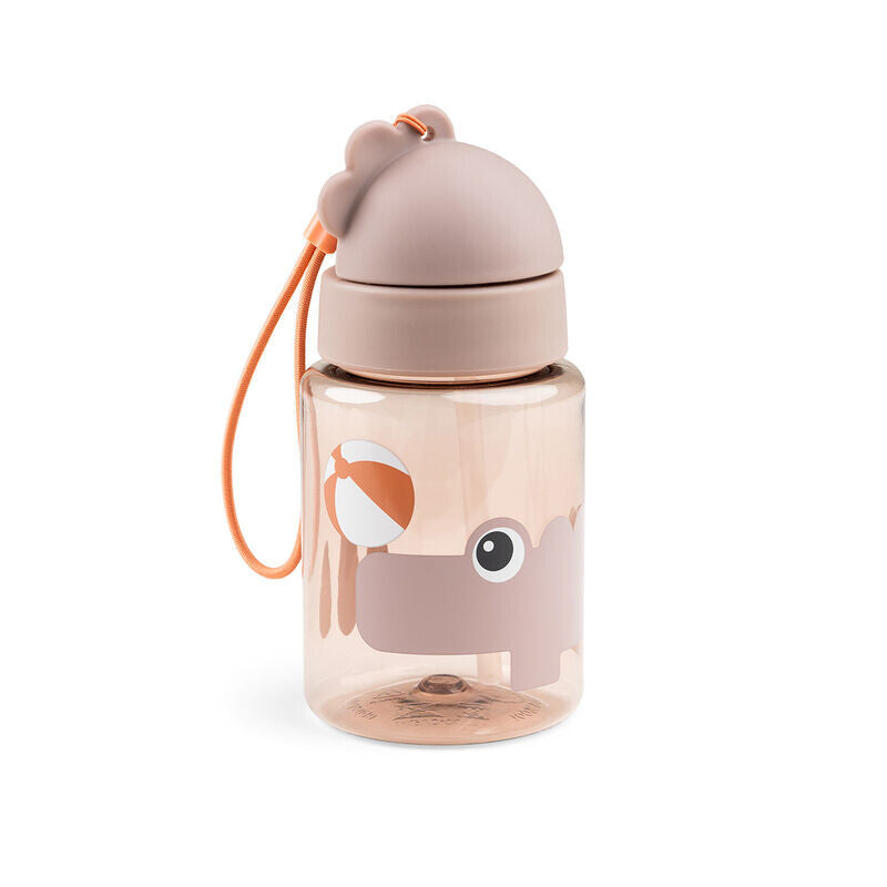 Our powder-coloured bottle is a great companion for your child's daily activities. This transparent bottle features a foldable straw for easy sipping, with a lid that cleverly prevents spills when not in use. Little fingers can easily access the straw, thanks to the playful Croco scales on the lid.