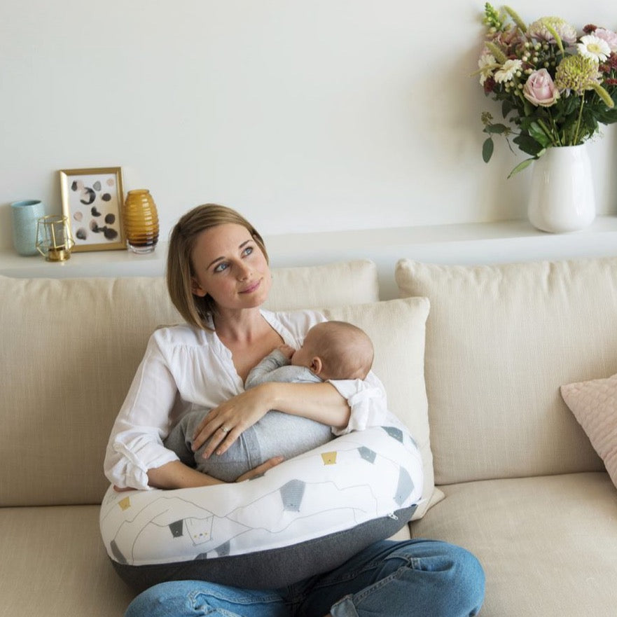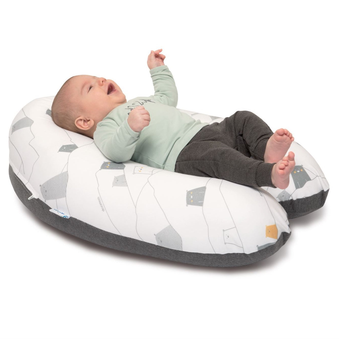 Doomoo Buddy is a multi-functional pillow, with an outstanding softness and flexibility, supporting you during your sleep and your baby during feeding, resting and playing.