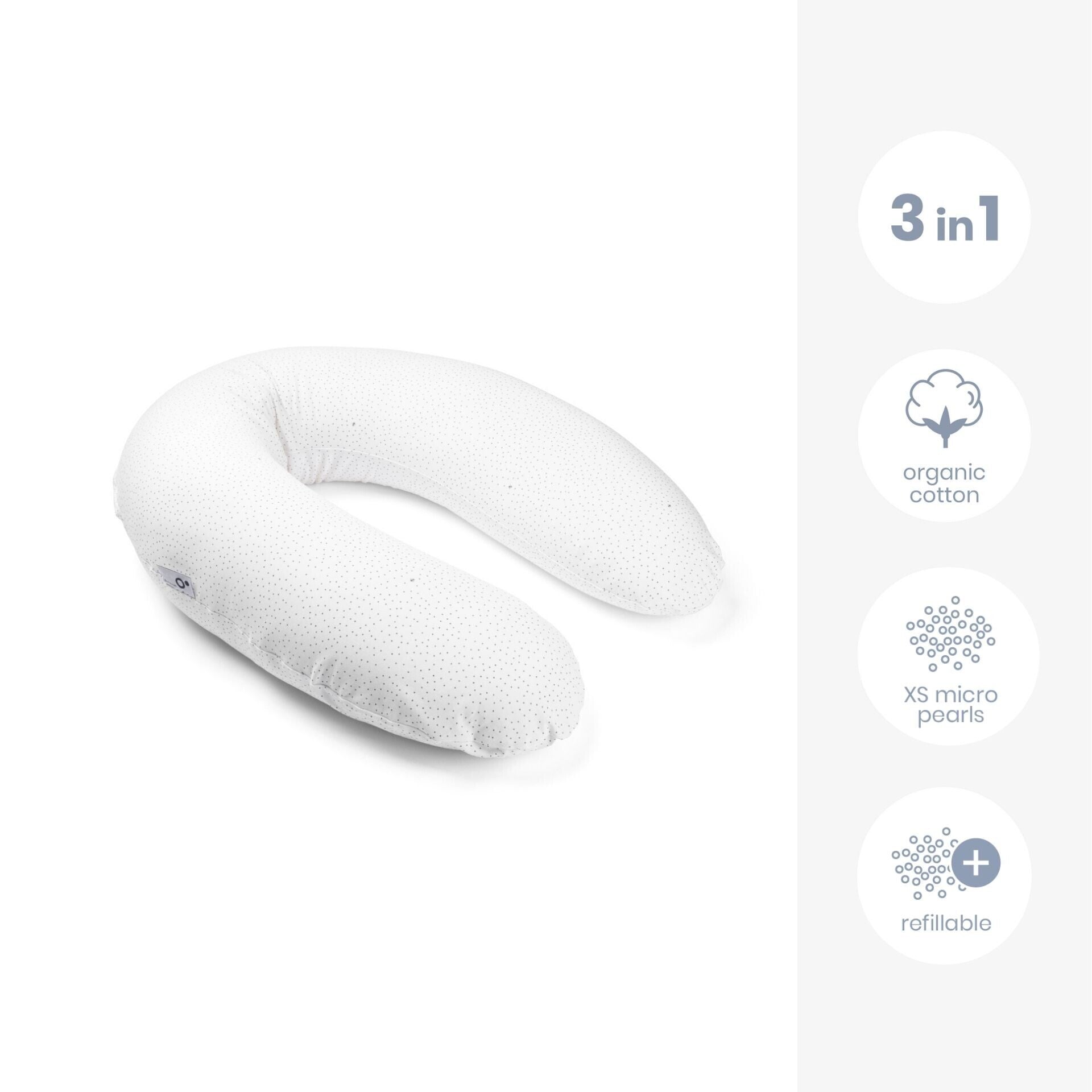 This pillow is a large multiuse micro balls cushion for mother and baby. The mother-to-be is guaranteed total comfort during pregnancy as well as during breast or bottle feeding. The baby will be wonderfully comfortable in different positions.