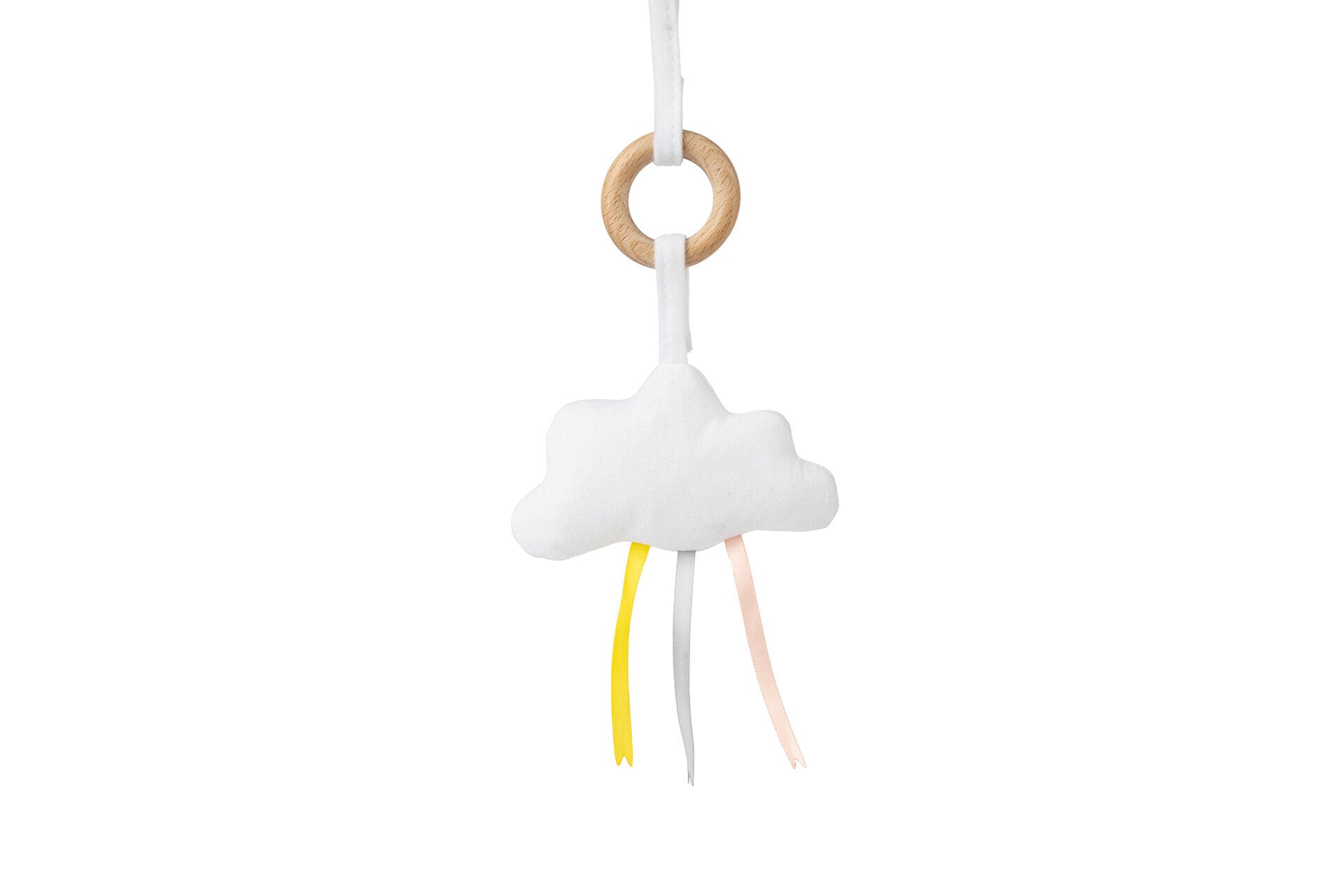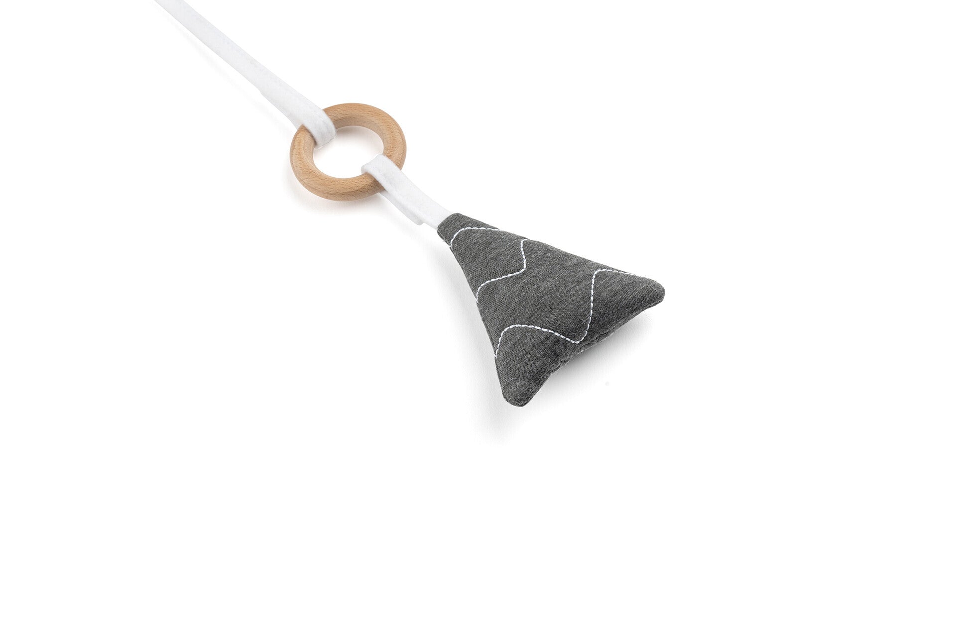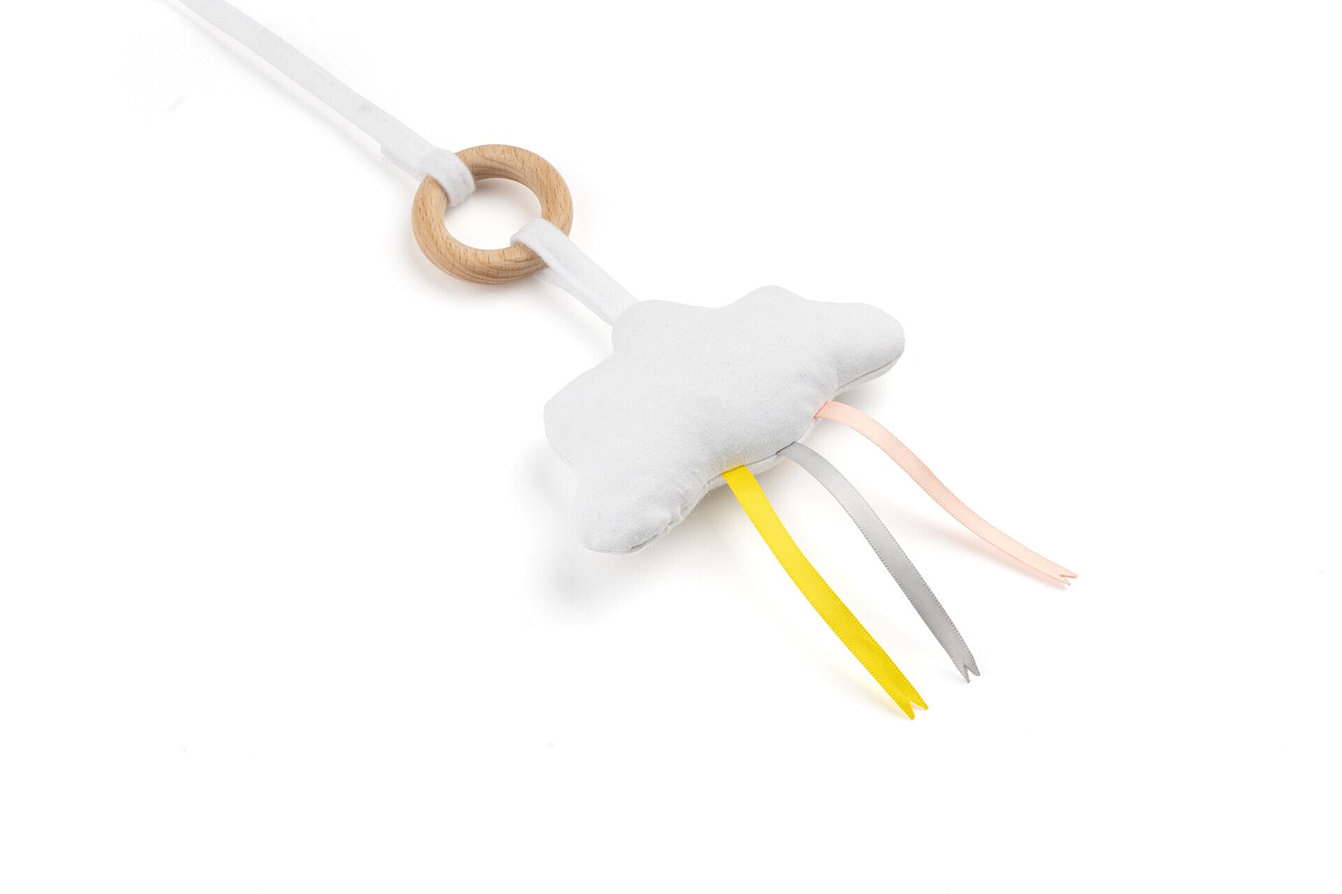 This baby gym fits perfectly in the Doomoo Cocoon but can also be used in a crib, on a playmat or with a bouncing chair. The toys are removable and can be adjusted in height. You can also attach other toys to the wooden baby gym.