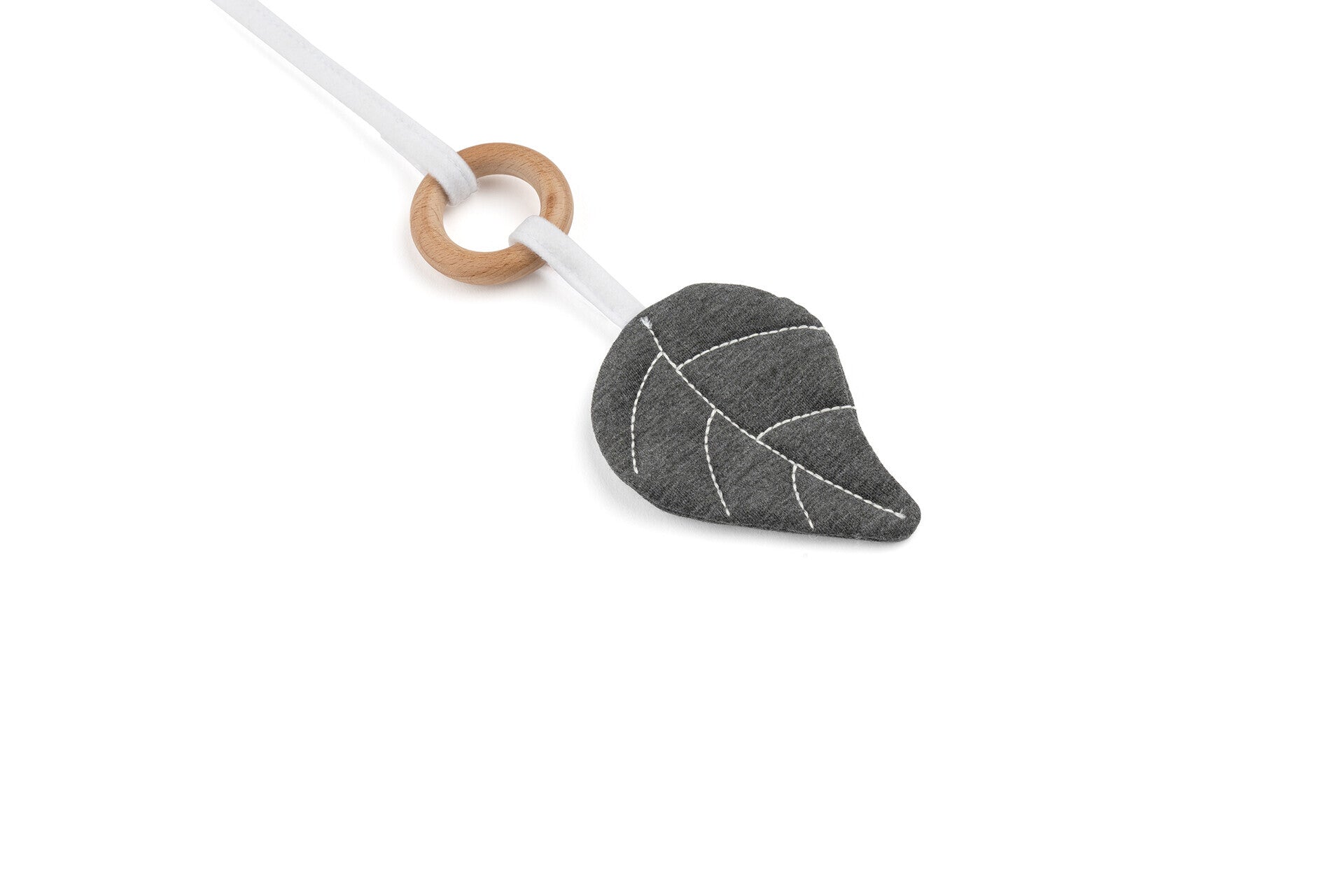 The dark-light contrasts in the toys and colourful ribbons stimulate the newborn visually. The crackling of the leaf and the ringing of the little mountain stimulate his hearing.