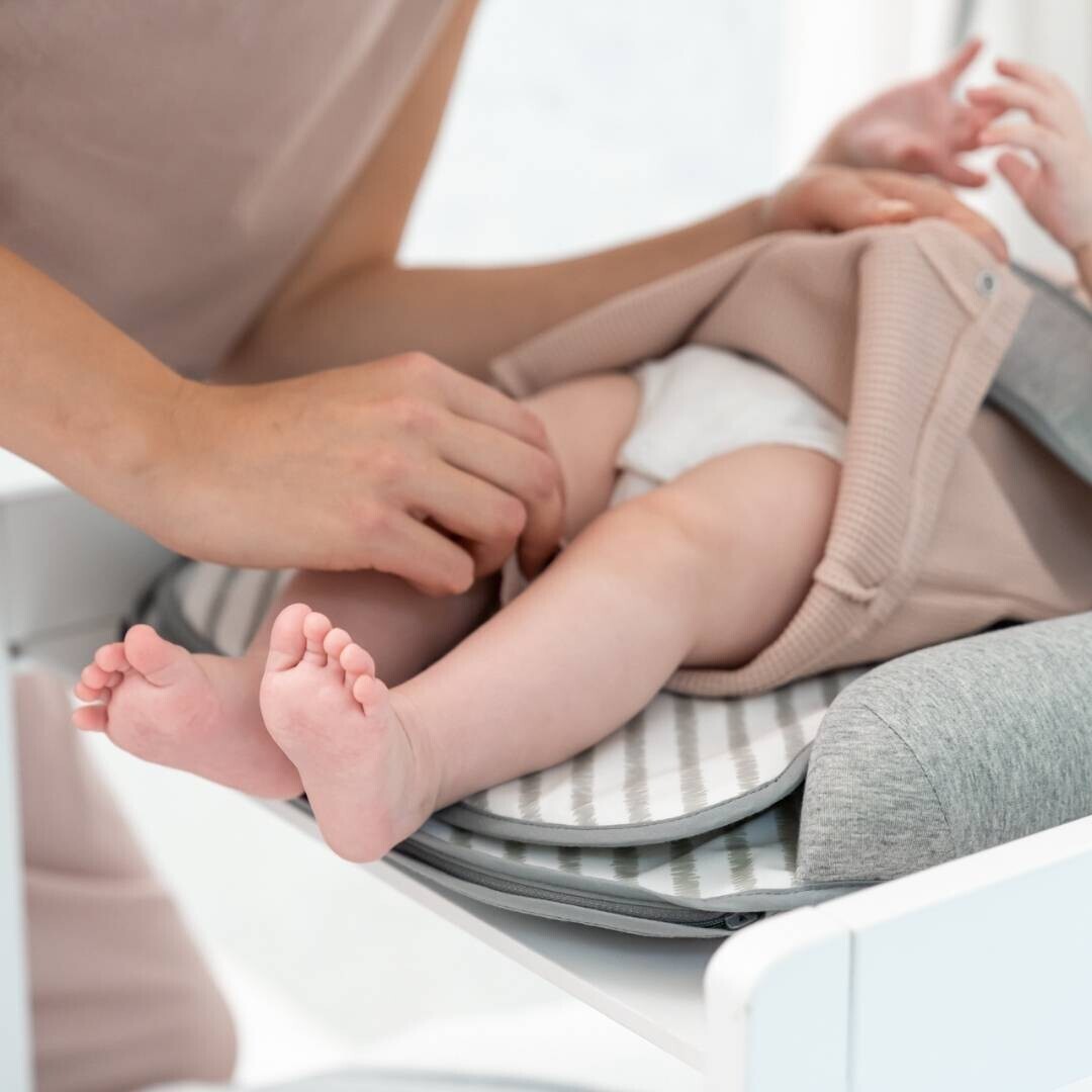 Doomoo Cosy care is a cosy and safe changing mat with all the extra needs: a security belt, soft stand-up edges and an additional pad. You’re welcome!