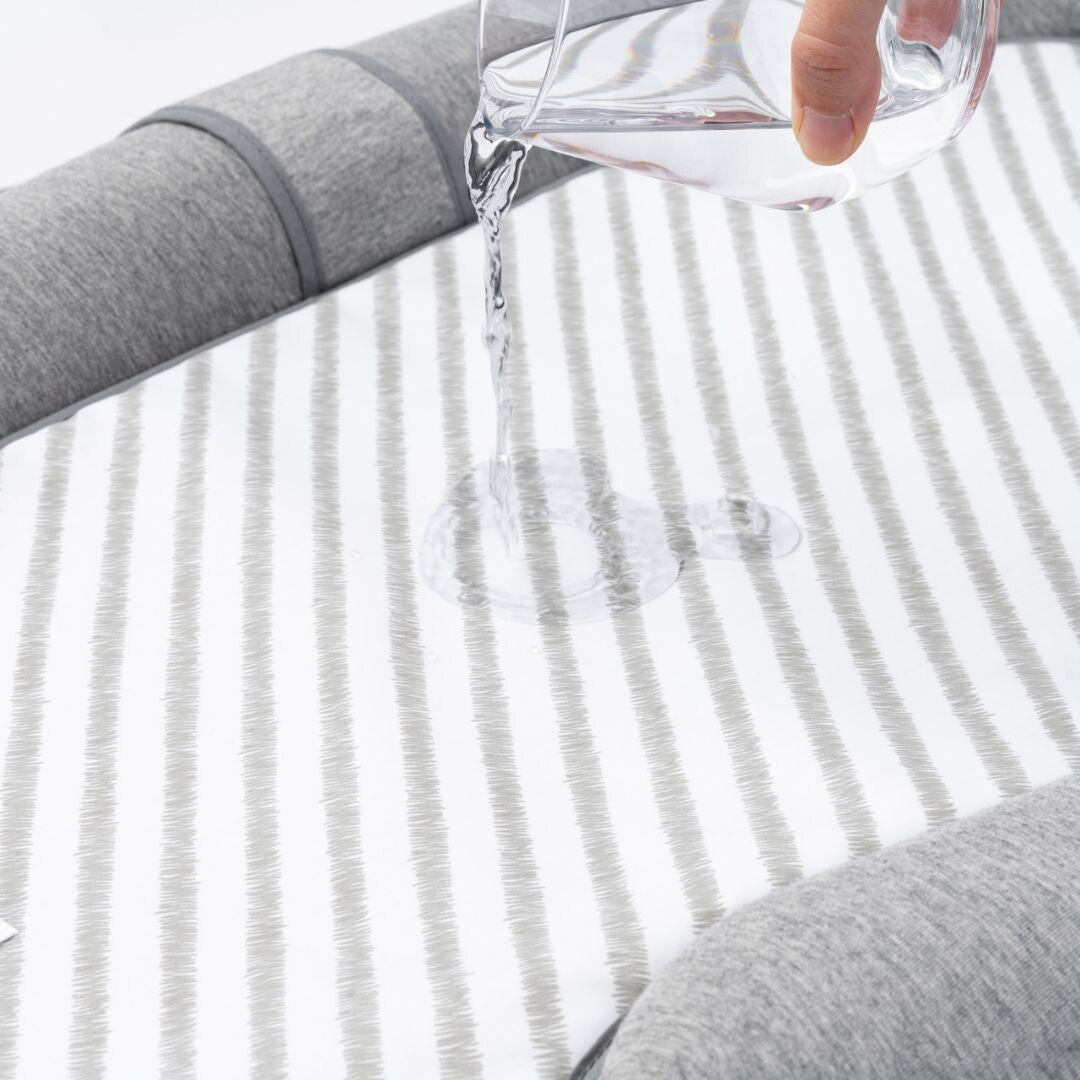 You can use Cosy Care from birth on. It’s made of soft, water repellent cotton. Doomoo Cosy Care comes with an extra pad which has one side in PVC free waterproof material and the other in super-soft water repellent cotton, so you can adjust the extra pad’s surface according to your baby’s diaper situation