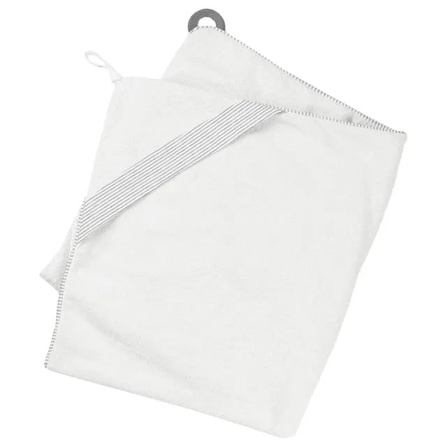 This large bath cape wraps your baby in softness, whilst protecting you against water splashes. A smart innovation is the silicone teether, which allows you to attach the cape around your neck, like an apron. While drying your baby, the teether serves as a fun toy. Thanks to the the cape’s large size, it’s the perfect choice for many years of use. The cape is made from thick organic cotton for maximum absorption.