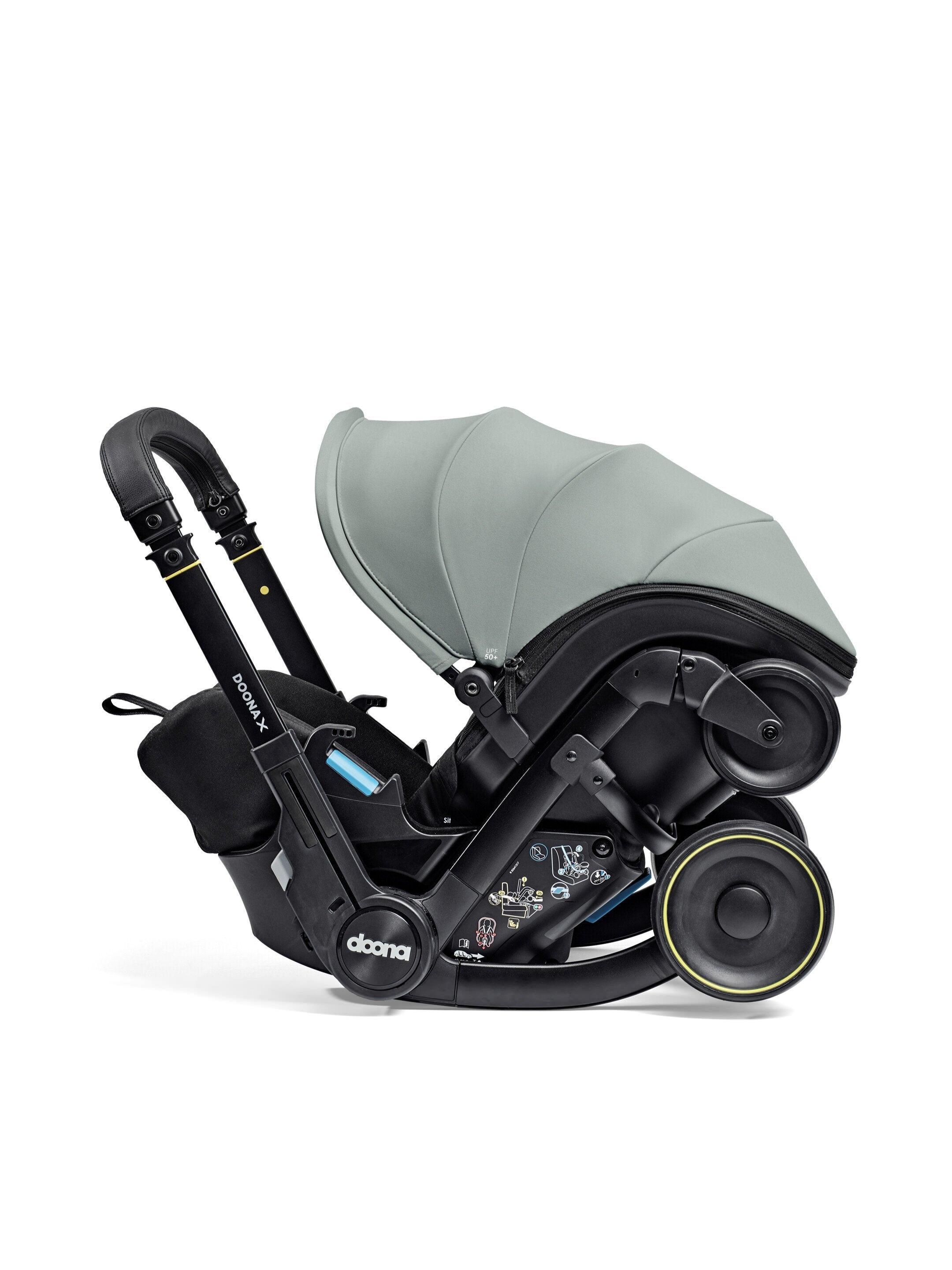 Doona X is the new generation of the Doona Car Seat & Stroller. Now with 3 recline positions - Sit, Relax and Lean Back, Doona X allows your child to lie down and relax. With its integrated, adjustable harness and headrest, the Doona X meets the European i-Size safety regulation (R-129). The patented shock absorbers and smooth-release system offer a smoother and safer ride than ever..The Doona X comes with the Doona SIP add-on, providing enhanced side-impact protection.