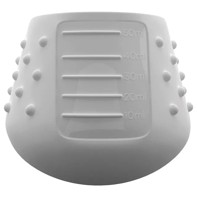 - NON-SLIP GRIPPY DOTS AND VOLUME MEASUREMENT: Designed with grip and texture in mind. The whole surface of our silicone cup is covered in cute tiny grippy dots. It also includes an external and internal volume line (mm) for parents to know exactly how to fill and how much they have sipped.