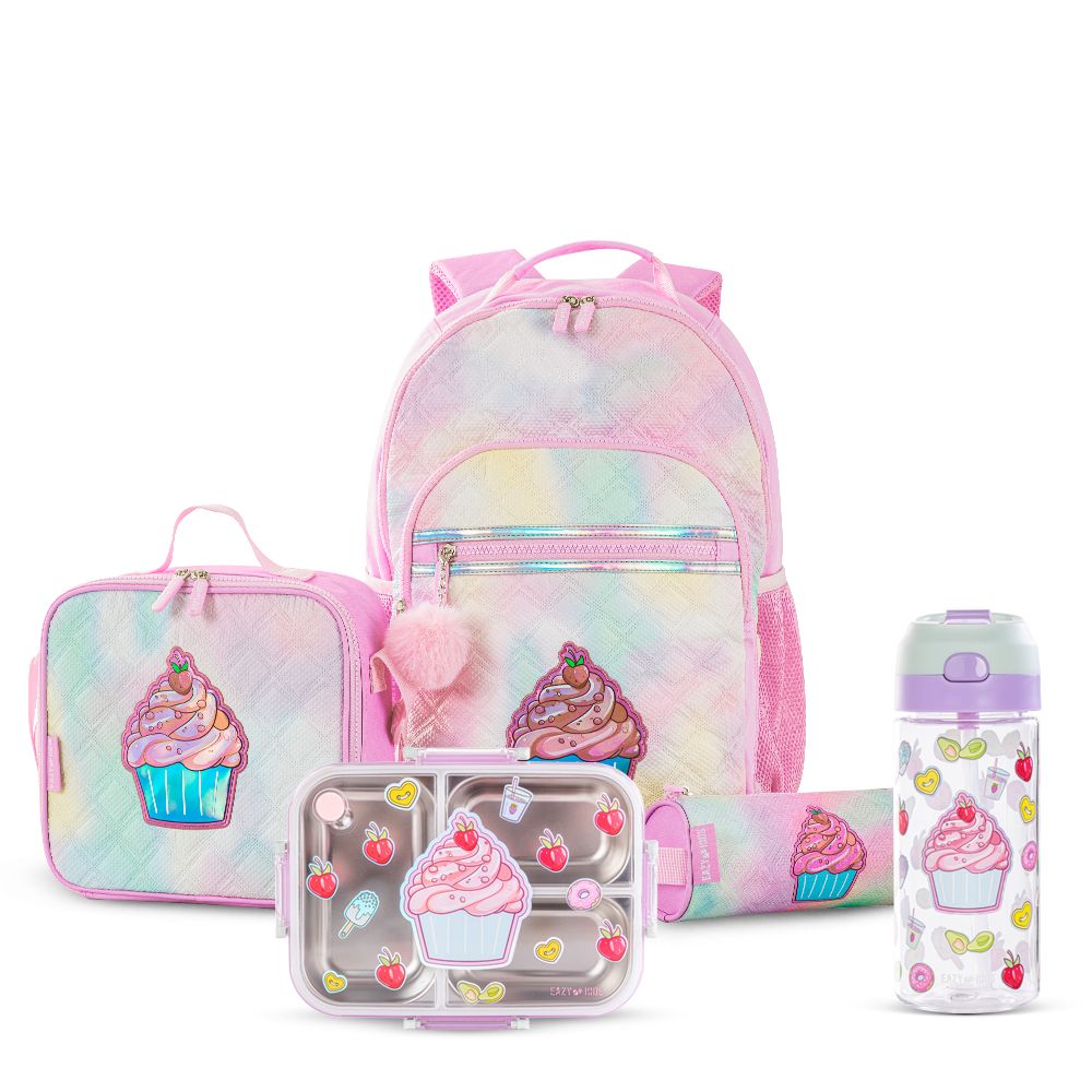 Crafted from premium-quality polyester, this Cupcake Pink-themed set is both stylish and durable, ideal for young students who love a fun and vibrant school look. The adorable cupcake print adds a playful and cheerful vibe, making school days even more exciting. With its blend of practicality and style, the Eazy Kids Cupcake Pink Back-to-School Set is a delightful must-have for every young scholar! Make a great combo with a trolley and matching school accessories - Steel water bottle, bento lunch box and stationary!