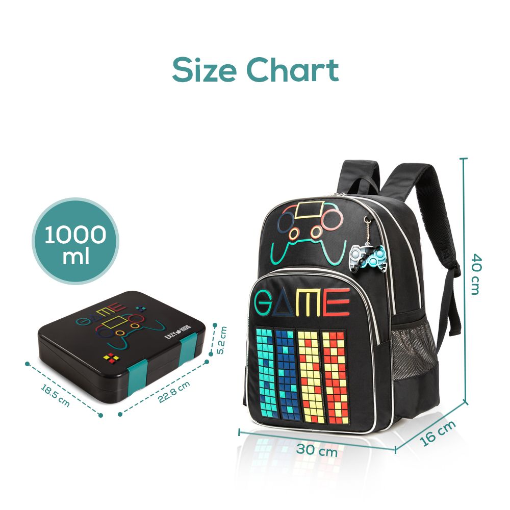 - 4IN1 CO-ORDINATED : With 4 in 1 Gamer Backpack, you will get 1 backpack, 1 Drawstring Bag, 1 Lunch box, 1 Pencil case.