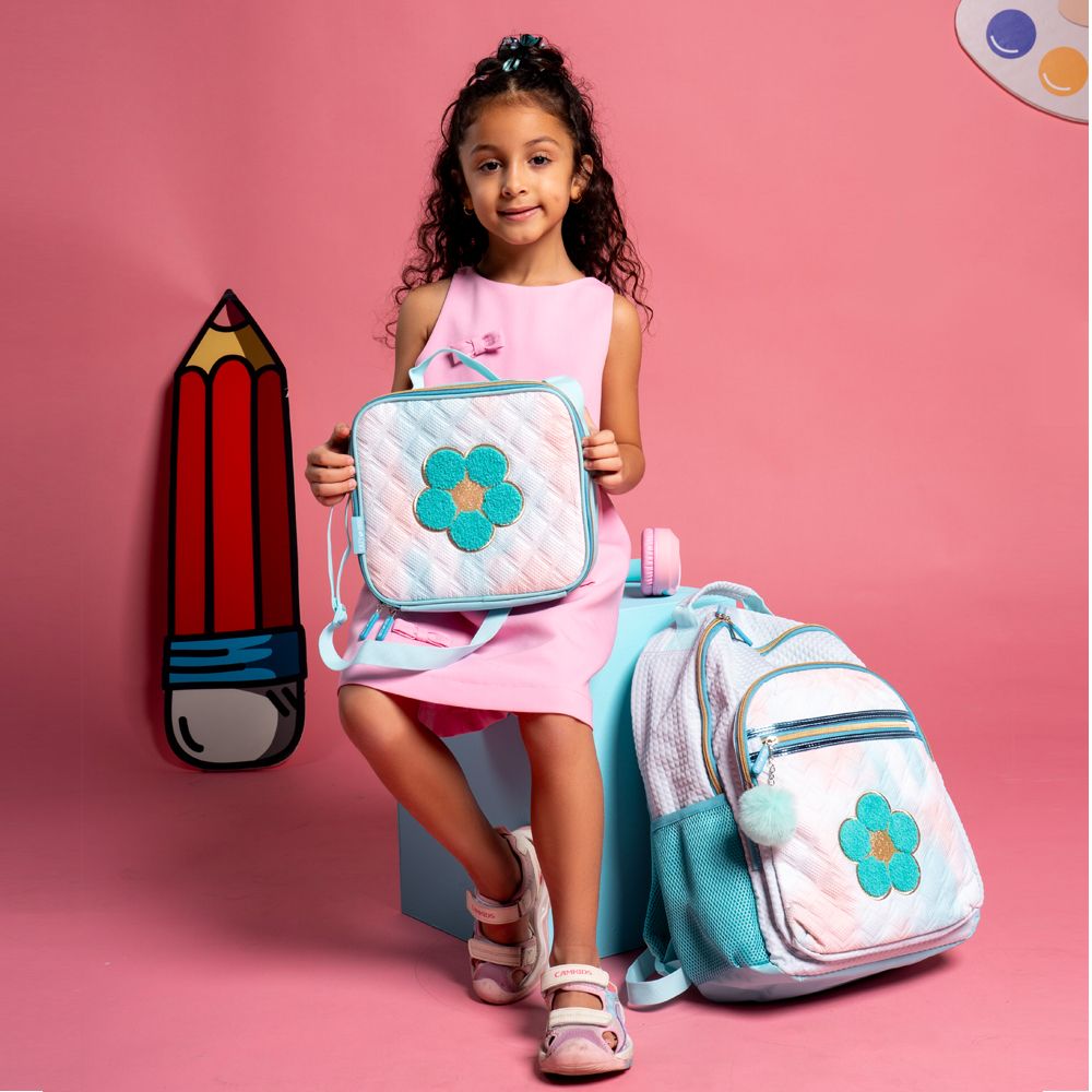 The backpack comes with special belt to attach with the trolley. Choose from Eazy Kids 2 wheel or 4 wheel trolley and convert it to a Trolley Backpack. The matching insulated lunch bag keeps food fresh and ready to enjoy throughout the day. Its two-way carry handle adds convenience, making it perfect for school lunches or picnics. Completing the set is the adorable Daisy Flower pencil case, a compact yet spacious organizer for pens, pencils, and stationery essentials. With a smooth zipper closure, it keeps everything securely in place.