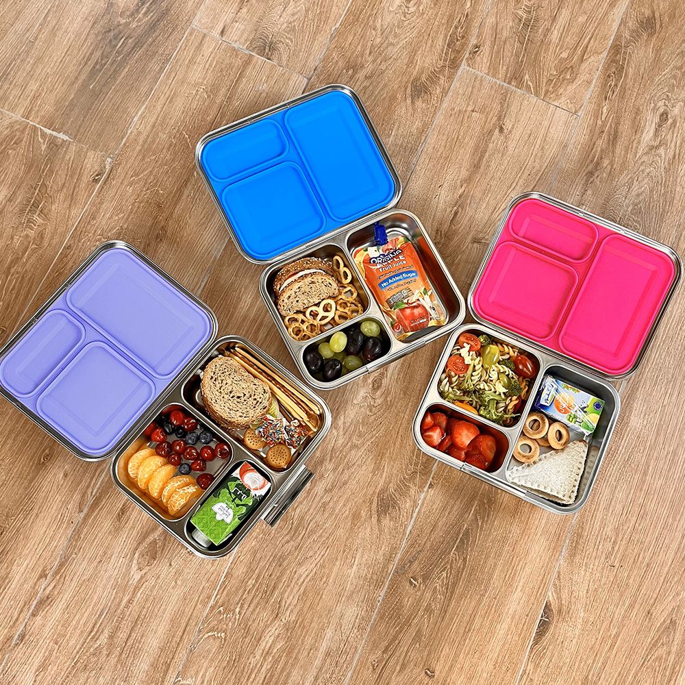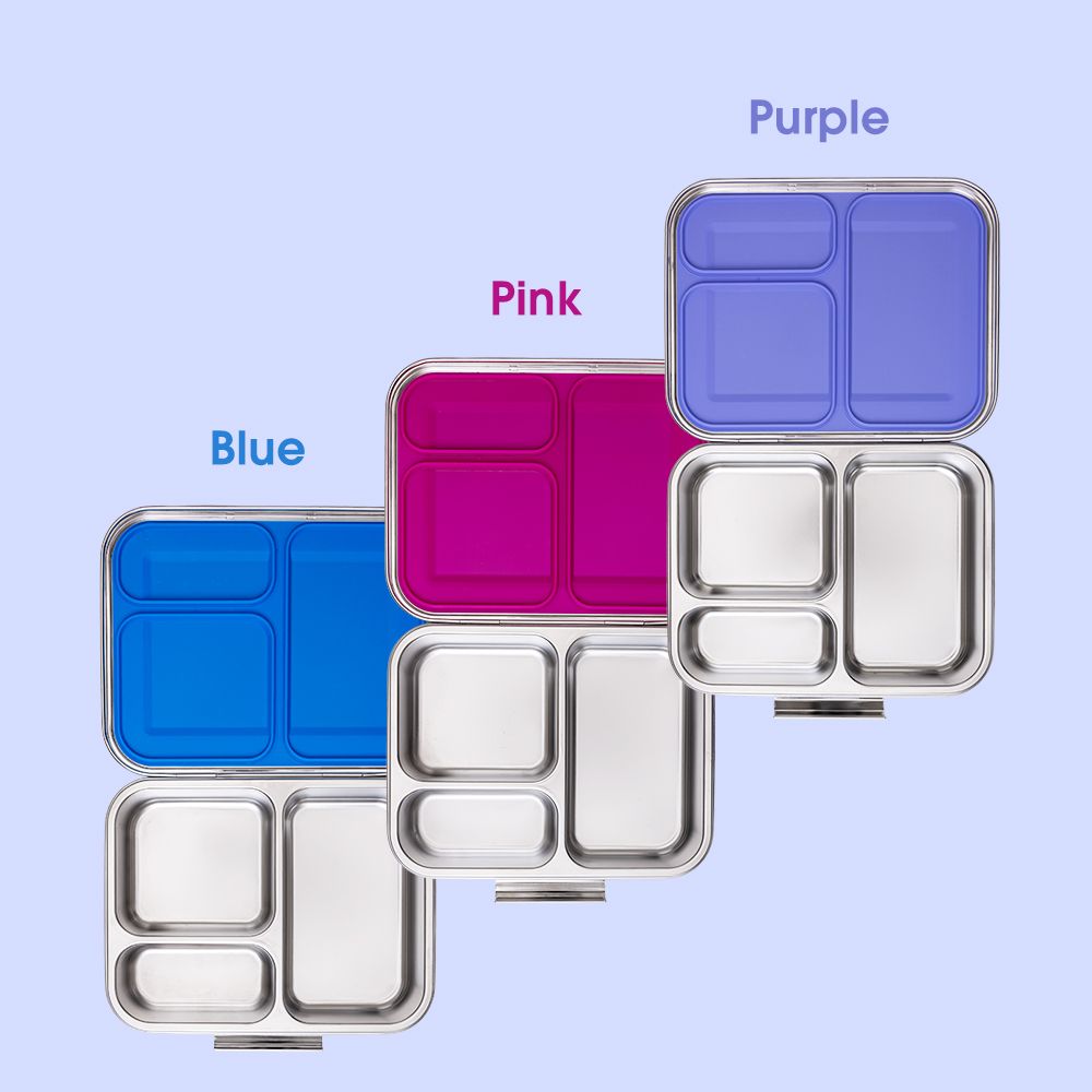 - Stainless steel bento box with 3 compartments for healthy meals