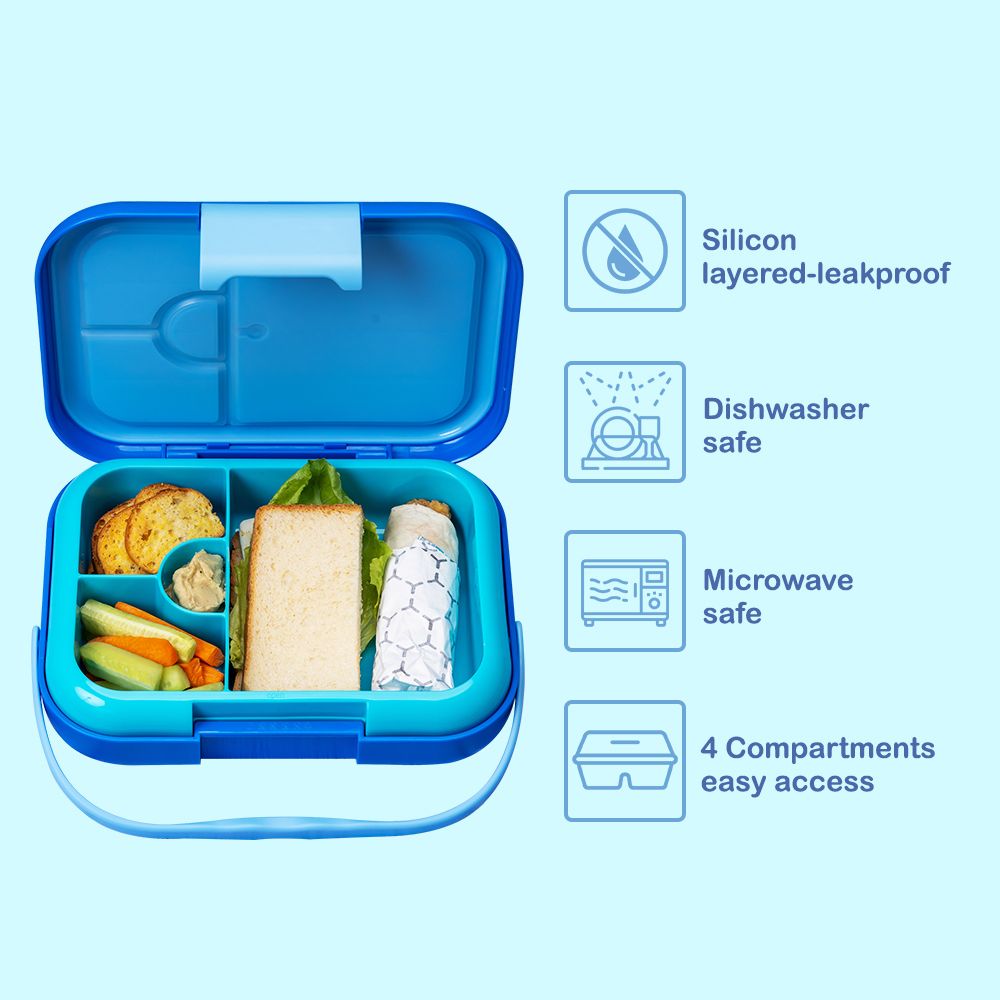 - A BPA and phthalate-free 800ml bento lunch box designed for balanced meals with four compartments.