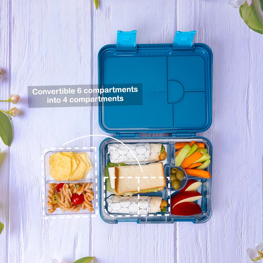 - Convertible from 6 to 4 compartment for a balanced Nutritious Meals, with 'Slant Mouth Open' for easy access to the food tray