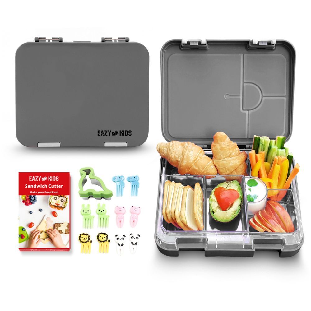 The Eazy Kids Bento Lunch Box in Grey brings style and function to school meals. Built from BPA- and BPS-free Tritan material, it offers a flexible tray that converts from 4 to 6 compartments. Each one is lined with a silicone seal to keep food fresh and leak-free.