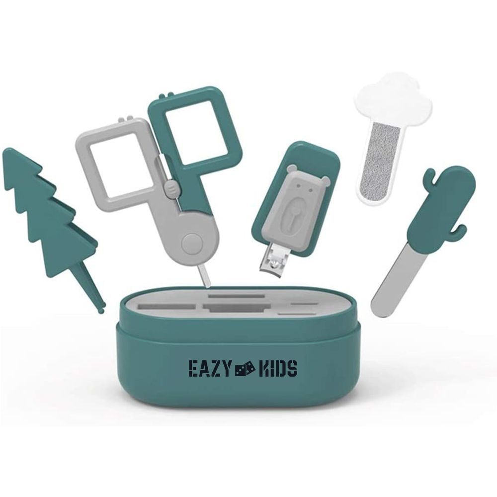 Eazy Kids 6 in 1 Baby Nail Care Set is great rust-free Manicure, Pedicure and Ear Care Kit for Newborns, Infants, Children, The arc-shaped scissors head design avoids scratching the baby's skin, and the scissors are equipped with safety locks to prevent the baby from opening the scissors alone to cause danger. Safe nail clippers, curved nail clip design, zero gaps to bite your baby's nails, fixed rotating handles are not easy to fall off, easy to cut out the perfect nail shape, leaving no burrs, and prevent scratching.