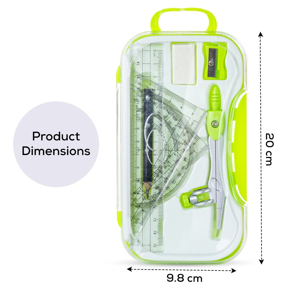 Equip students, artists, or professionals with the Eazy Kids 8?Piece Geometry Box Set in a vibrant color and transparent case. Engineered for precision, this compact kit includes a compass with pencil holder, ruler, protractor, protector, sharpener, eraser, and two set squares—everything needed for technical drawing. Sleek and durable, the case keeps instruments organized and ready for school, college, or office use. Ideal for homework, classroom work, or professional projects, it brings accuracy and convenience wherever you go.