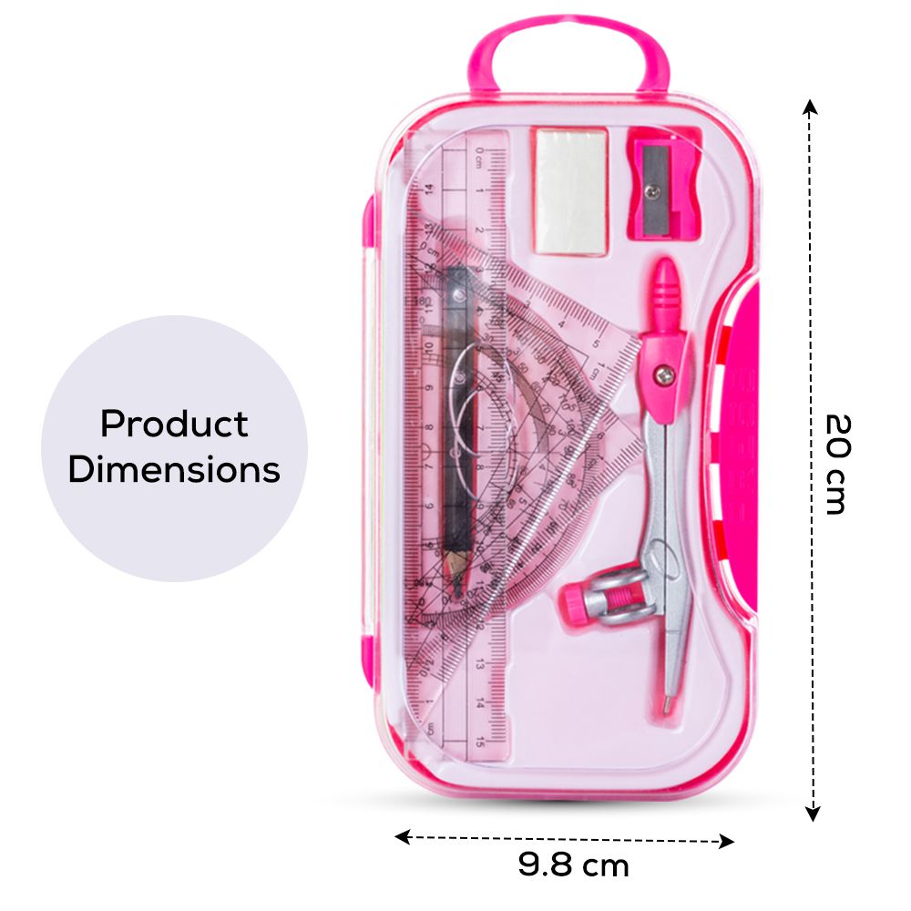 Equip students, artists, or professionals with the Eazy Kids 8?Piece Geometry Box Set in a vibrant color and transparent case. Engineered for precision, this compact kit includes a compass with pencil holder, ruler, protractor, protector, sharpener, eraser, and two set squares—everything needed for technical drawing. Sleek and durable, the case keeps instruments organized and ready for school, college, or office use. Ideal for homework, classroom work, or professional projects, it brings accuracy and convenience wherever you go.