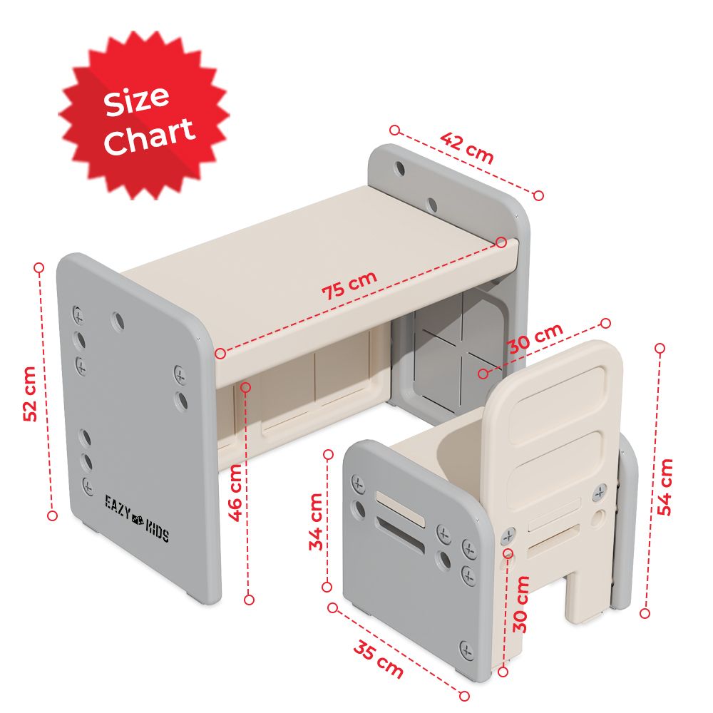 - Compact & Space-Saving Design: With its sleek grey finish and compact size, the set fits easily in bedrooms, play areas, or nurseries, offering a dedicated learning and play space without taking up too much room.