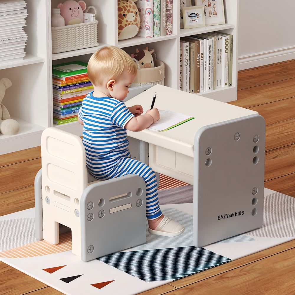 Perfect for homes, playrooms, nurseries, and even daycares, this kids' activity table and chair set is compact, space-saving, and stylish. The neutral grey color blends effortlessly with any room décor. From toddler learning time to preschool art projects, the Eazy Kids Table and Chair Set makes learning fun and mess-free. A must-have for modern parents looking for a multipurpose kids’ table and chair set with comfort, safety, and functionality in one.