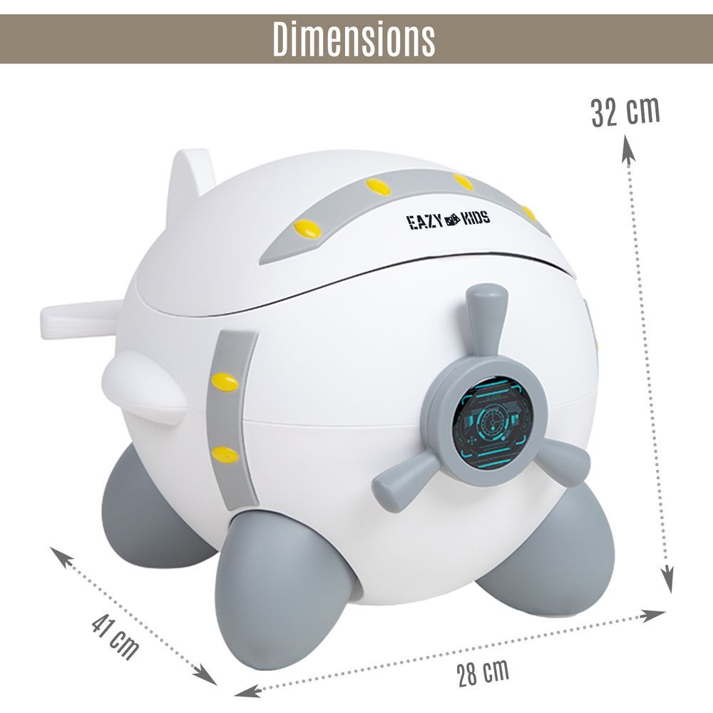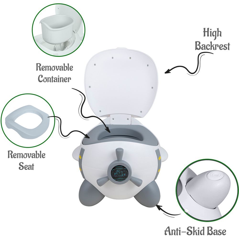 Eazy Kids new generation Airplane Potty Seat is a Fun way to potty train your Toddler. This baby potty has a cute Airplane shape with rounded corner and is equipped with a removable container and seat for convenience to clean easily. Gripped bottom makes sure that the potty seat is stable and doesn't move. Cute Cover helps to keep it covered when not in use. lid not only keeps the this closed but also serves as a backrest on which the child can lean while sitting. Little ones can play aviator while learning the simple but very important habit of their own needs.