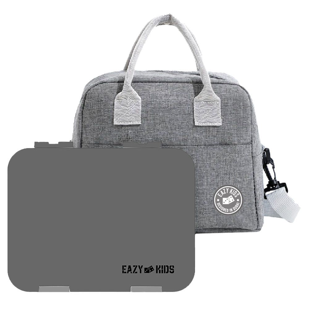 The Eazy Kids 4 to 6 Compartment Bento Box with Insulated Lunch Bag in Grey is a smart and durable mealtime solution. Crafted from BPA-free Tritan, it features a convertible design with a removable tray for 4 or 6 compartments. The insulated bag with a capacity of 7L is lined with aluminum foil and 4mm thermal pearl foam, keeping food warm or fresh for hours. Waterproof, easy to clean, and wear-resistant, it’s designed for convenience and pairs perfectly with Eazy Kids bottles and cutlery.