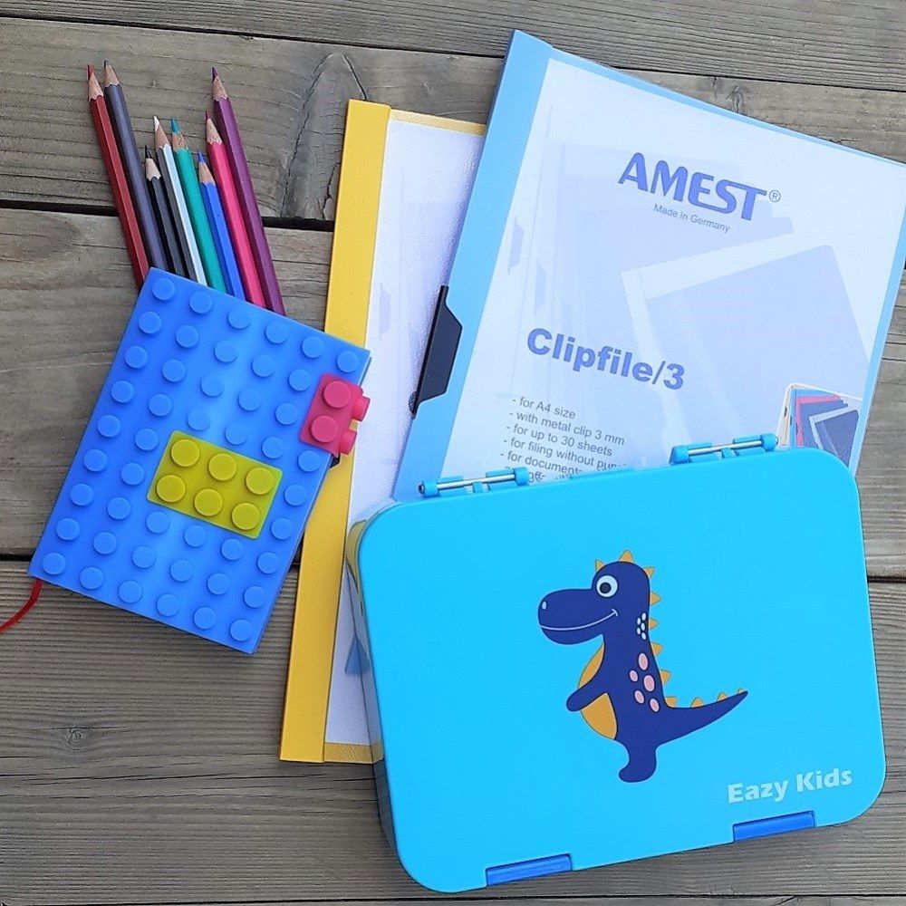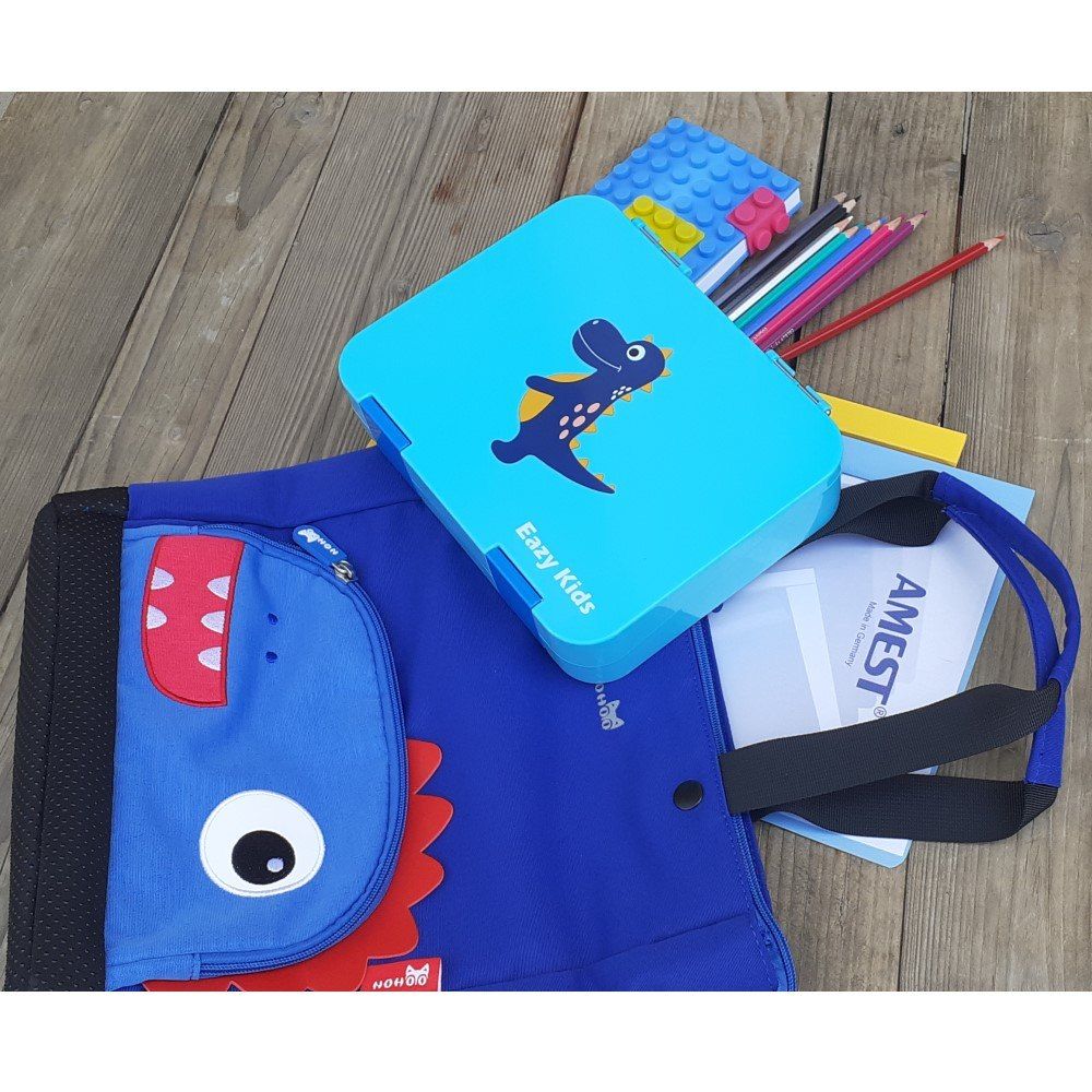 Bring prehistoric fun to lunchtime with the Dino Blue Eazy Kids Bento Box. Made from durable, BPA-free Tritan, it features a slanted lid and 4 silicone-sealed compartments ideal for a variety of food types.