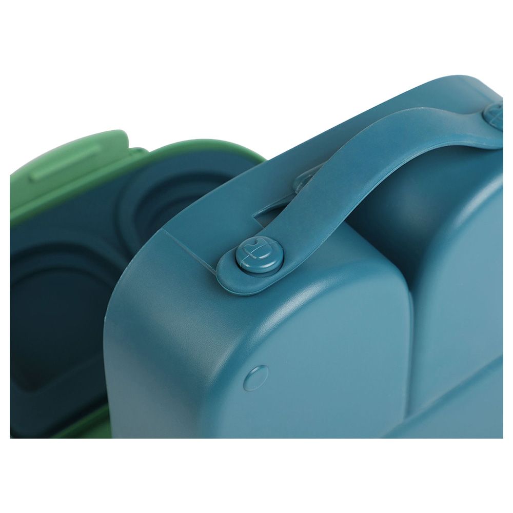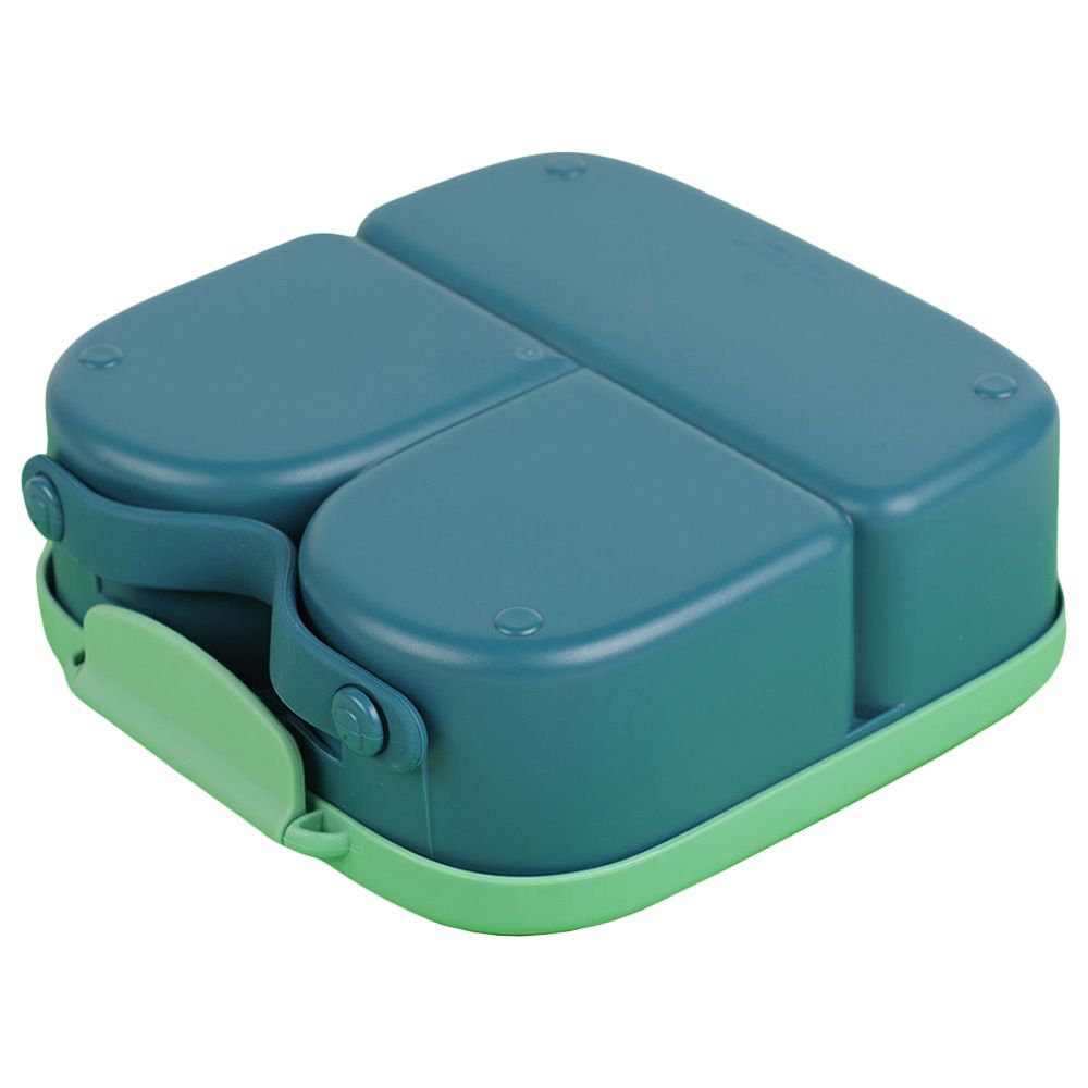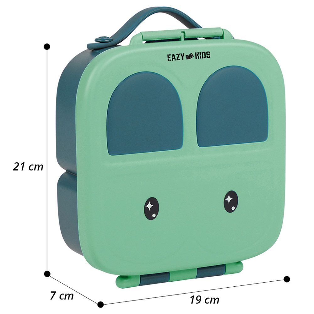 The Eazy Kids Bento Lunch Box with Handle in Green features four compartments to separate meals and snacks efficiently. Made with BPA-free materials, it has a secure lid and a convenient handle for carrying. Durable and easy to clean, this lunch box supports healthy eating habits and keeps food fresh, ideal for school lunches or outdoor activities with a fun green finish.