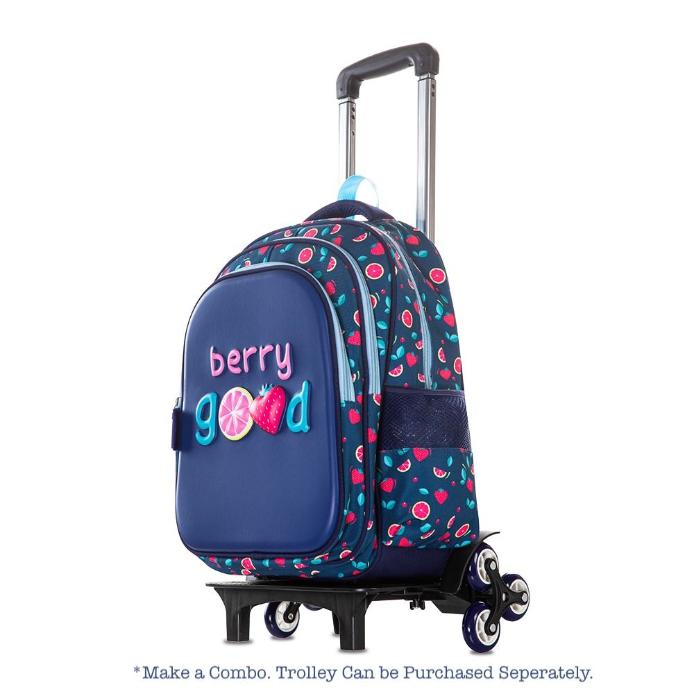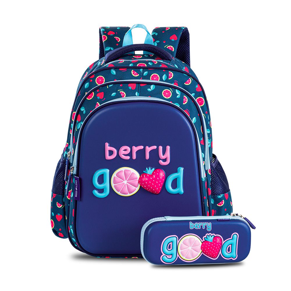 The Eazy Kids 16-inch School Bag with Pencil Case in Berry Good Blue is the perfect blend of style, storage, and comfort for young students. With a 20L capacity and 3D fun design, it features double zippers, cushioned back support, and padded shoulder straps for ergonomic comfort. It fits a 14-inch laptop securely and includes a pencil case for stationery. Trolley-compatible with a buckle lock and light-reflecting safety strips, it's ideal for school and travel. Made from high-quality polyester. Specifications: Weight: 0.64kg (Backpack), 0.13kg (Pencil Case) Dimensions: 41×29×15cm (Backpack), 22×9.5×2cm (Pencil Case) Capacity: 20L