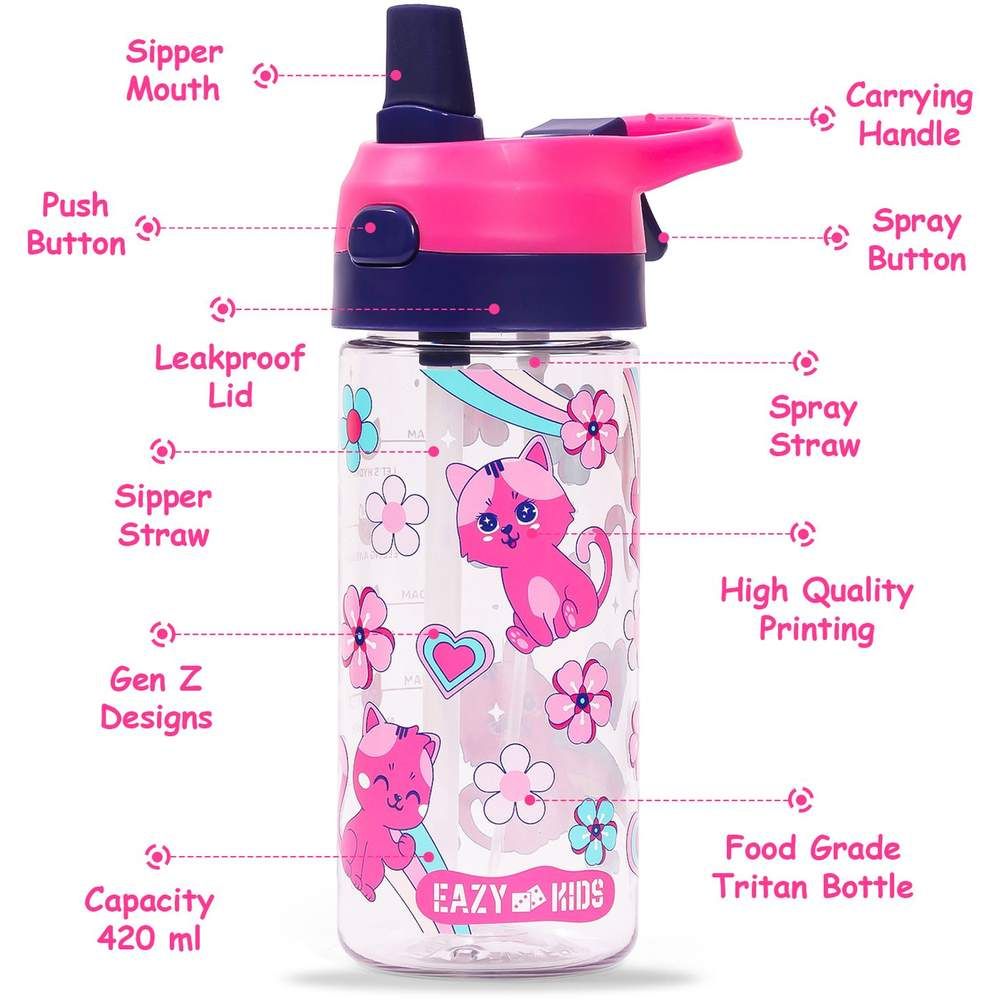 We make Hydration and Meal time fun! Fill Up your kids day with Eazy Kids Meal Box and Eazy Kids Drinkware Water Bottle . Eazy Kids Lunch Box and Tritan Water Bottle made with BPA and Phthalates Free material non-toxic, food grade & eco-friendly. The Capacity of Water Bottle is 420ml to keep your Kid full day hydrated and Tiffin Box is 850ml for a Balanced Nutritious Meals, Lunch Box comes with 4 Clasp lock & Both Sipper and Lunch Box are lined with silicon which makes it completely leakproof.