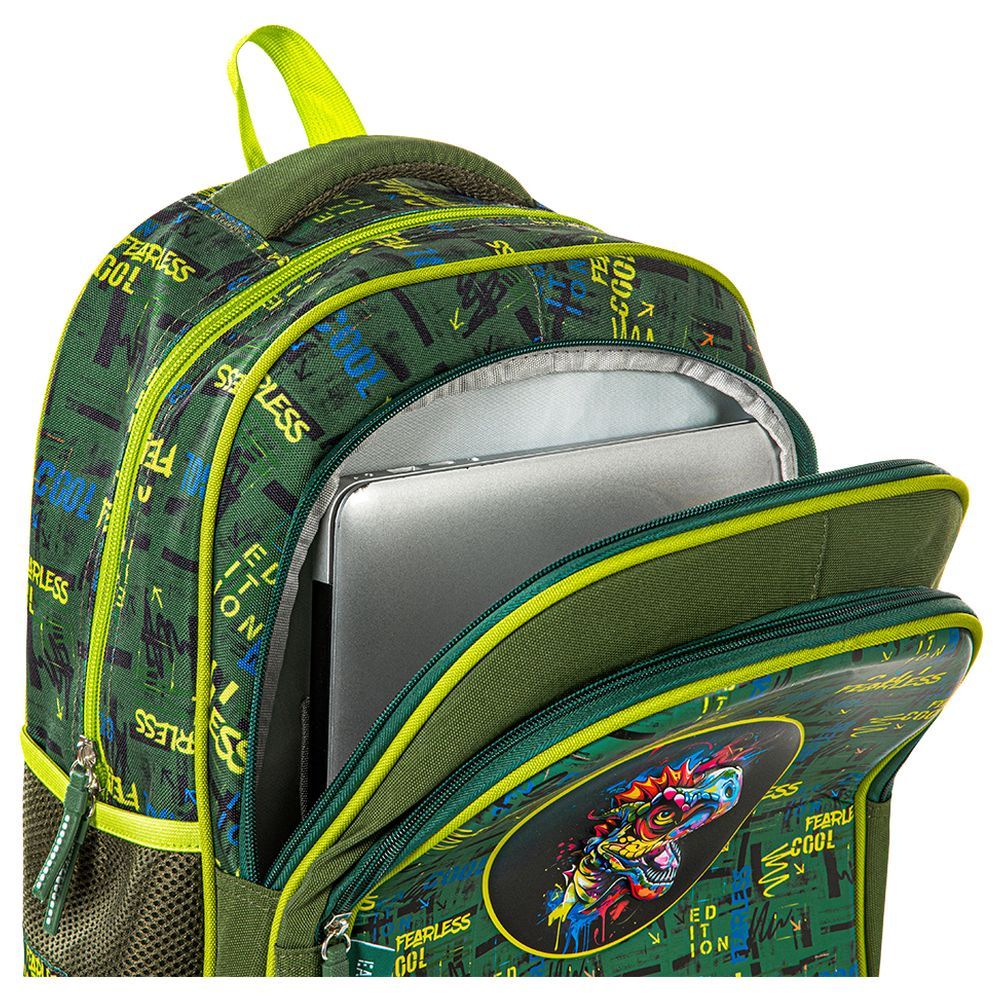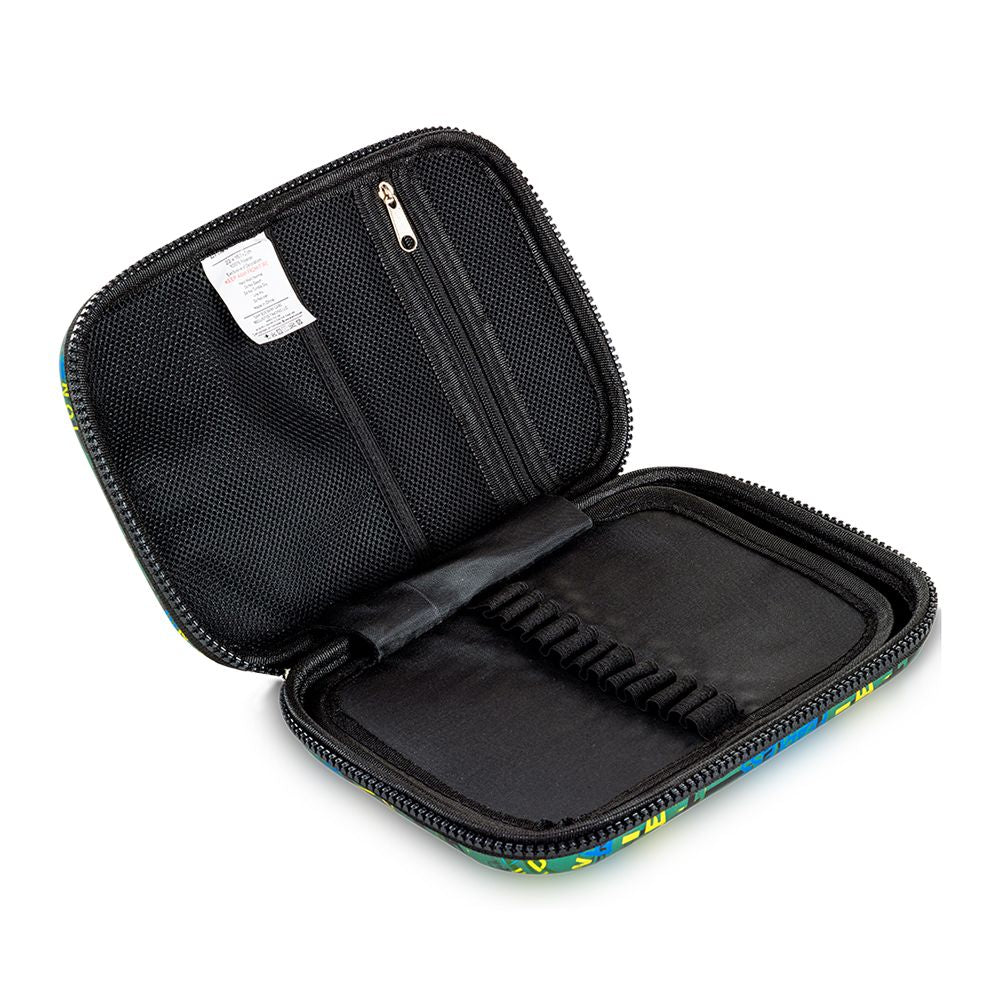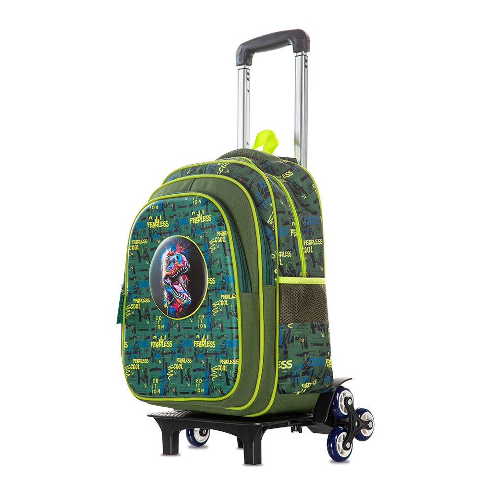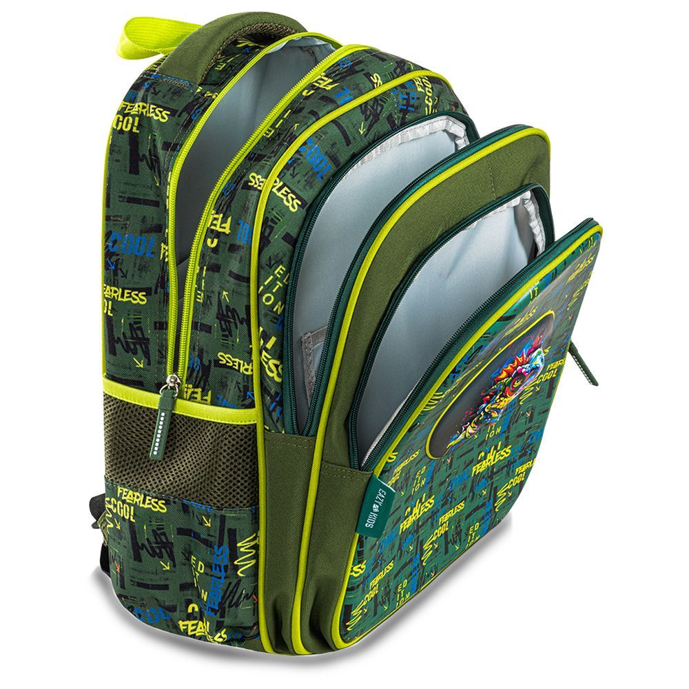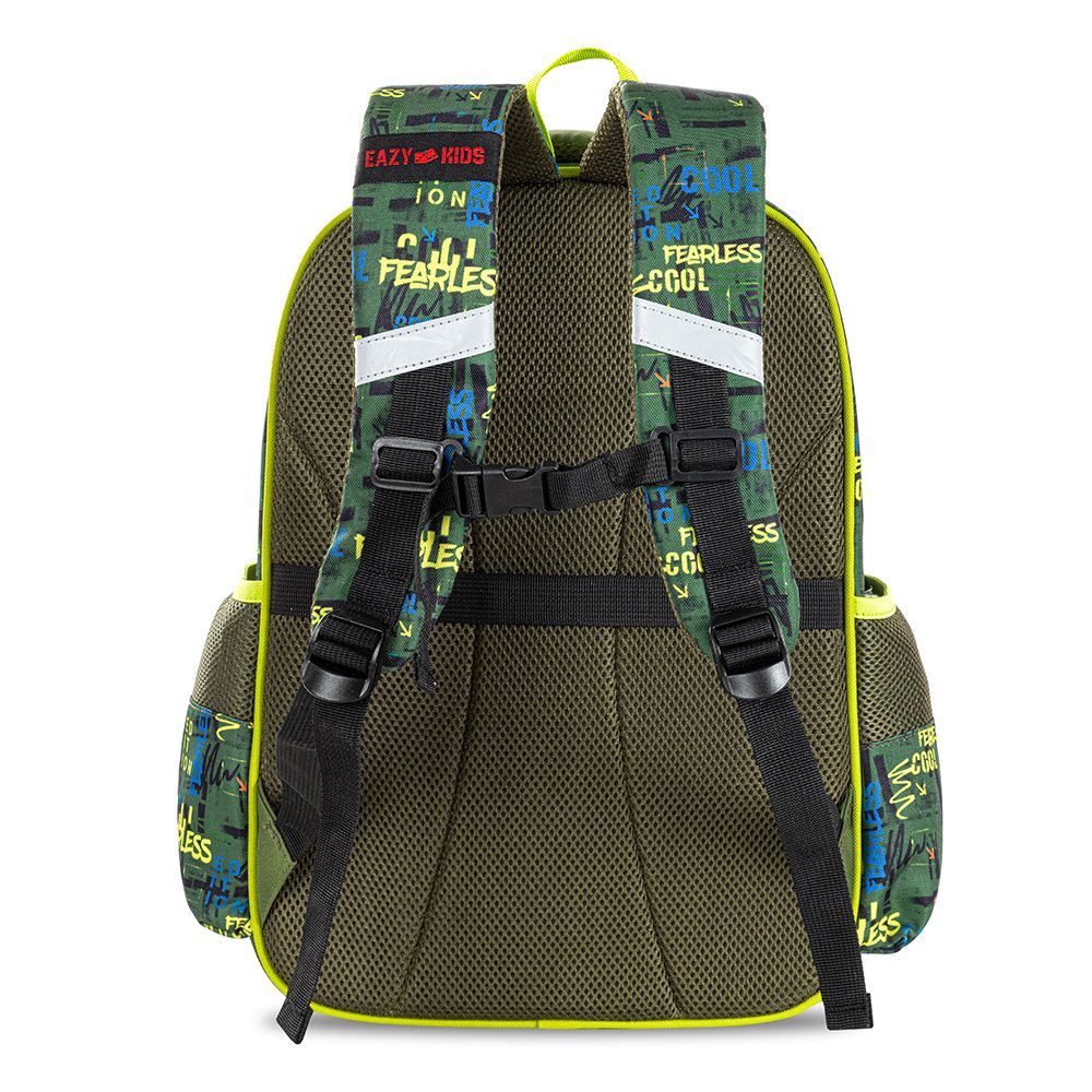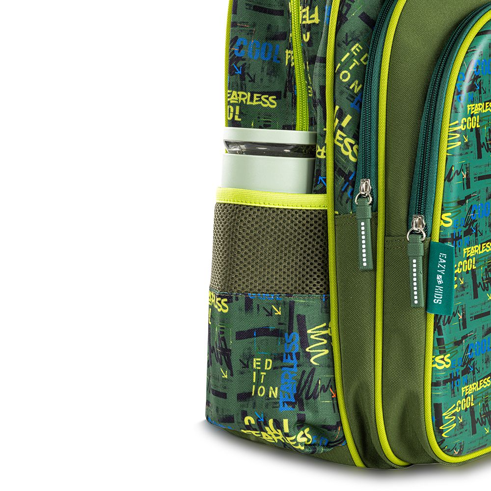 Unleash adventure with the Eazy Kids Fearless Cool Dino Green 16-inch school bag and pencil case set. Made from lightweight, durable polyester, this 20L capacity backpack offers multiple compartments, cushioned back support, padded shoulder straps, and a laptop pocket for devices up to 14 inches. The trolley-compatible design with buckle lock ensures easy transport, while reflective detailing boosts safety during low-light commutes. The set includes a matching dino-themed pencil case to keep stationery organized.