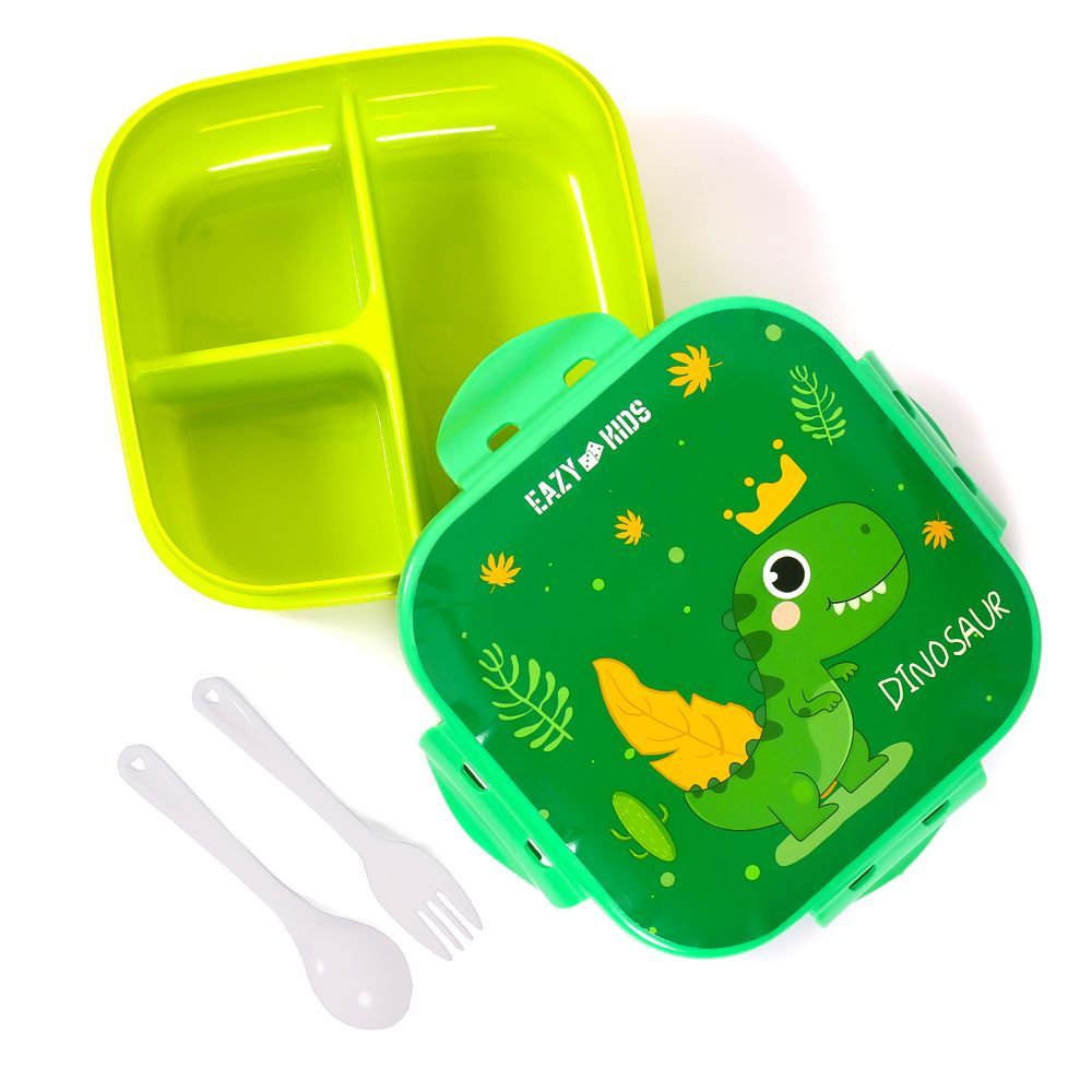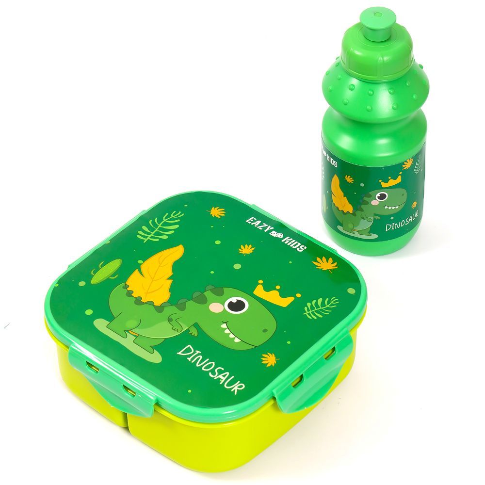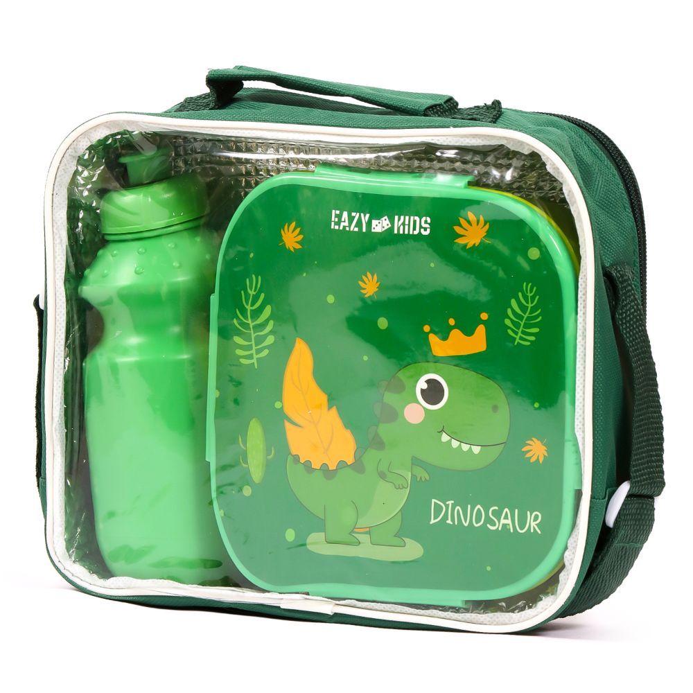 Eazy Kids Dino Lunch Box And Water Bottle With Bag - Green