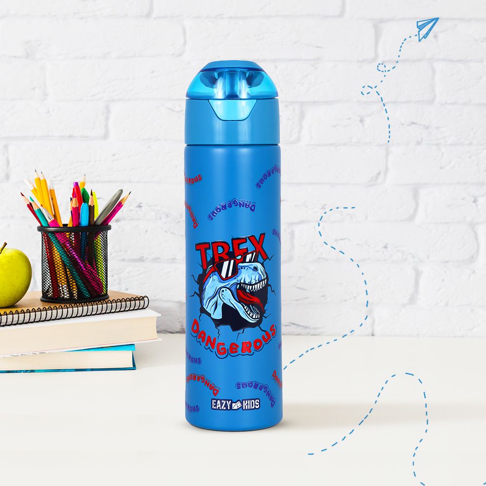 Eazy Kids Dinosaur Double Wall Insulated Steel Water Bottle with Spray 640ml - Pink