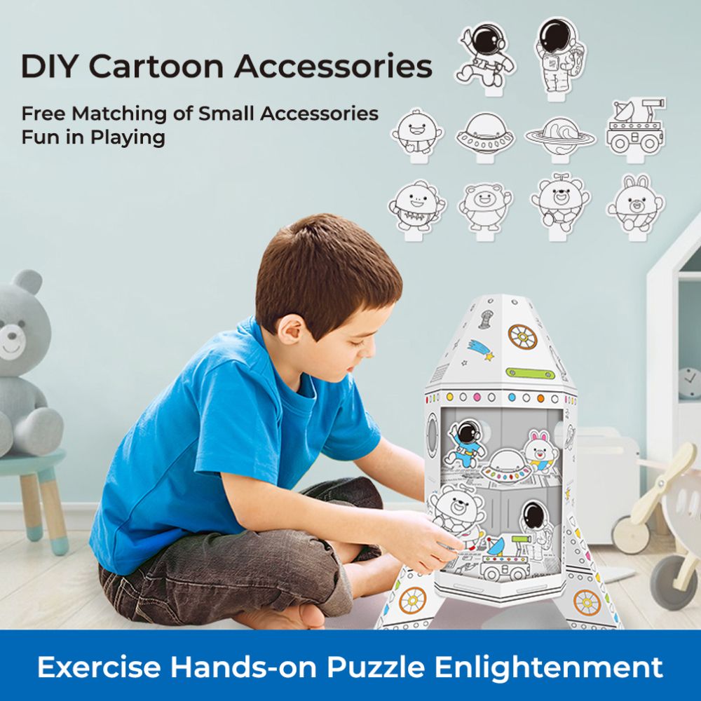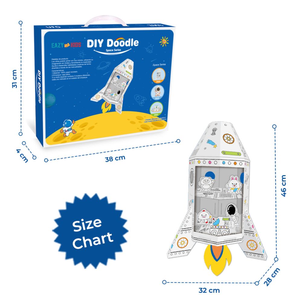 Let imaginations soar with the Eazy Kids DIY Creative Spacecraft Set! Designed for kids 3+, this hands-on cardboard spaceship lets children color, decorate, and build their very own intergalactic vessel using the 3 included color pens. Made from eco-friendly cardboard, it helps build fine motor skills and artistic confidence with no screens or mess. Lightweight and easy to assemble, it's perfect for indoor play, playdates, or gifting. Product Dimensions: 32x28x46 cm | Weight: 0.28 kg Packing Size: 38x4x31 cm Includes: 1x Cardboard Spacecraft, 3x Color Pens